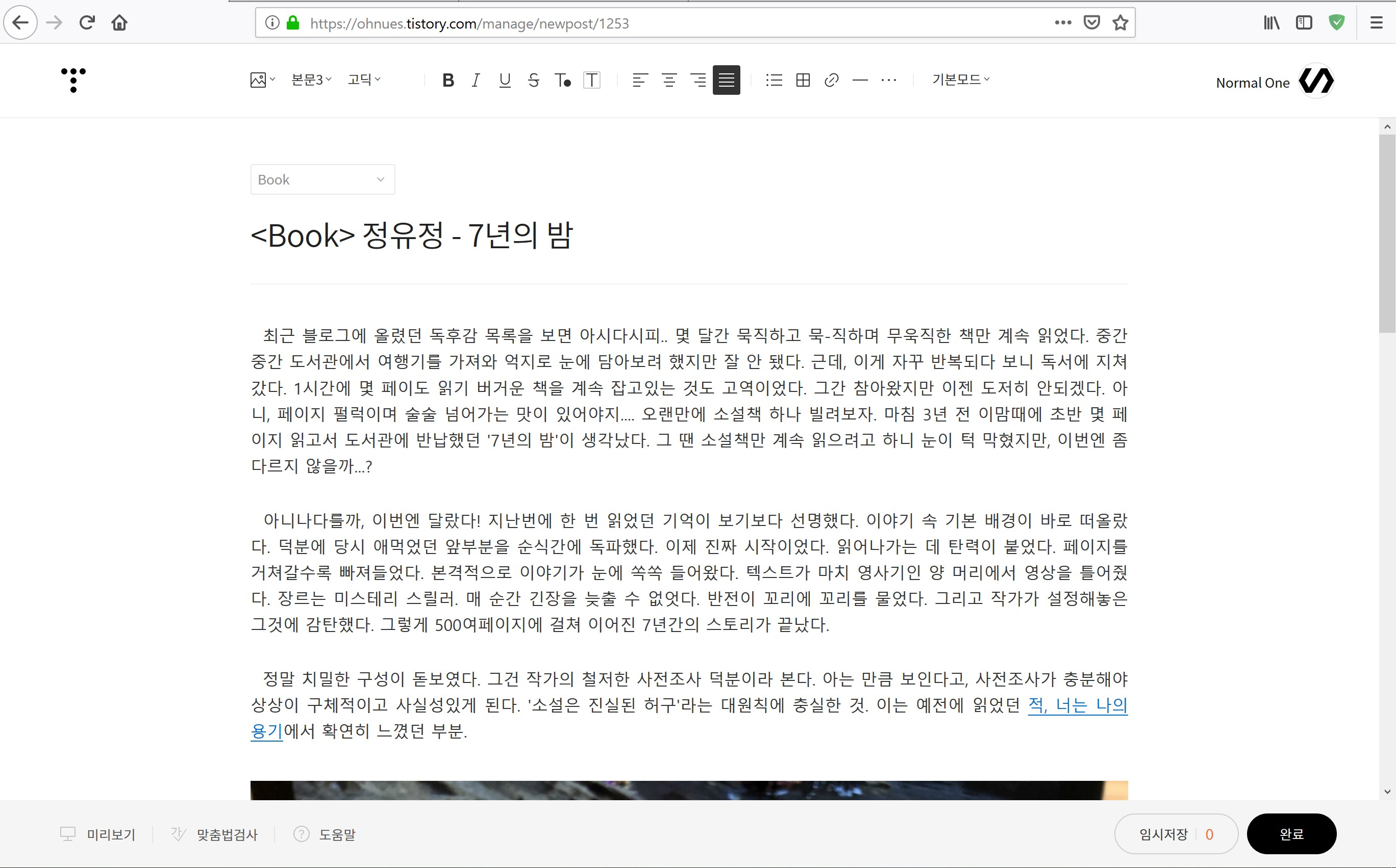 조금 전에 올린 독후감 한창 쓰고 있는데, 위에 에디터를 바꾸겠냐는 문구가 떴다. 고민 없이 바로 교체. 안 그래도 Flash가 말썽이어서 파이어폭스가 계속 멈추곤 했었기에 새 에디터를 기다리고 있던 참이었다.
