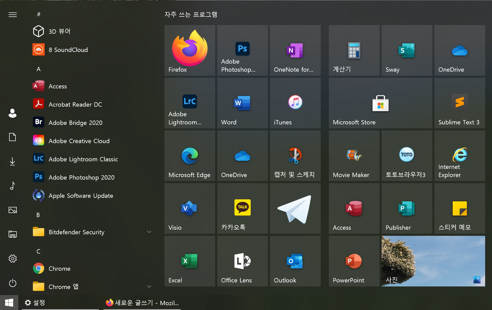 정말 아무것도 변한 게 없나 싶어 윈도우 버튼을 눌러보니 시작메뉴에 있는 타일이 모두 같은 색상으로 통일되었더라. 그제서야 업데이트가 끝났다는 게 실감났다. 되긴 됐구나..