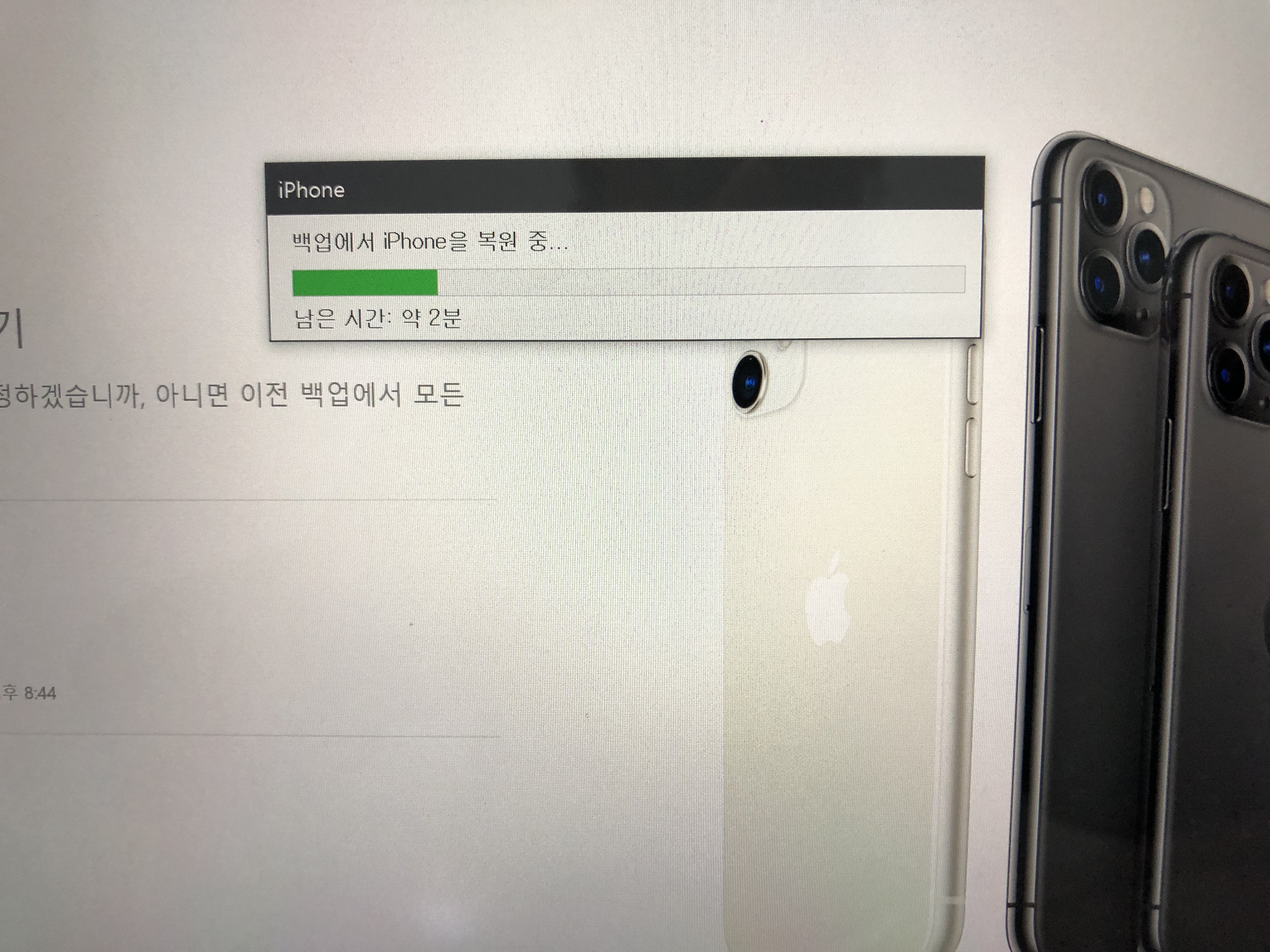 결국 처음부터 다시 시작했다. 이번엔 노트북에 연결해서 미리 해둔 백업을 복원하는 방식으로 진행했다. 이것도 많이 걸리려나 했는데..