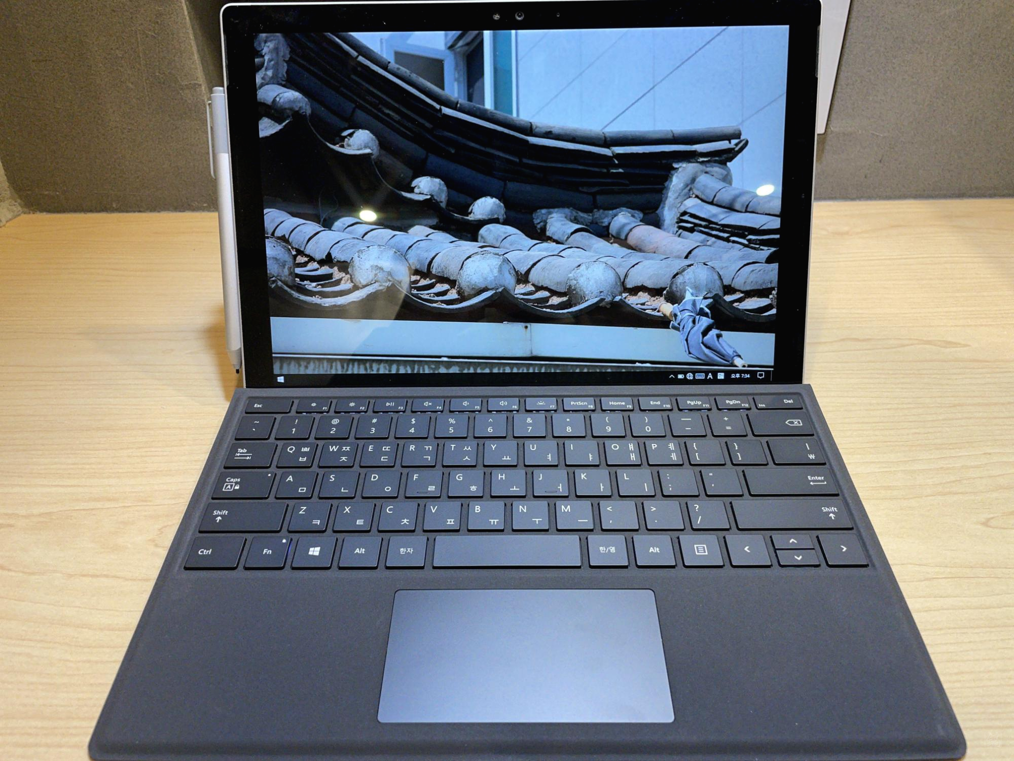 간단히 인증샷을 남긴 다음, 서피스를 켰다. 일단 (사실상)새 제품이다 보니 노트북을 새로 바꾼 느낌이 나더라. 현장에서도 확인했지만, 다시 자리에서 확인했을 때도 별다른 문제는 없어보였다. 무엇보다 큰 차이는.. 이전 커버를 쓸 땐 충전중일 땐 이따금씩 터치패드에 전기가 흐르는 게 느껴졌었는데, 이번엔 특별히 그런 느낌이 없었다. 앞으로 어떻게 될지 모르지만 확실히 이전 커버에 비해 제품 상태가 좋긴 한 듯.