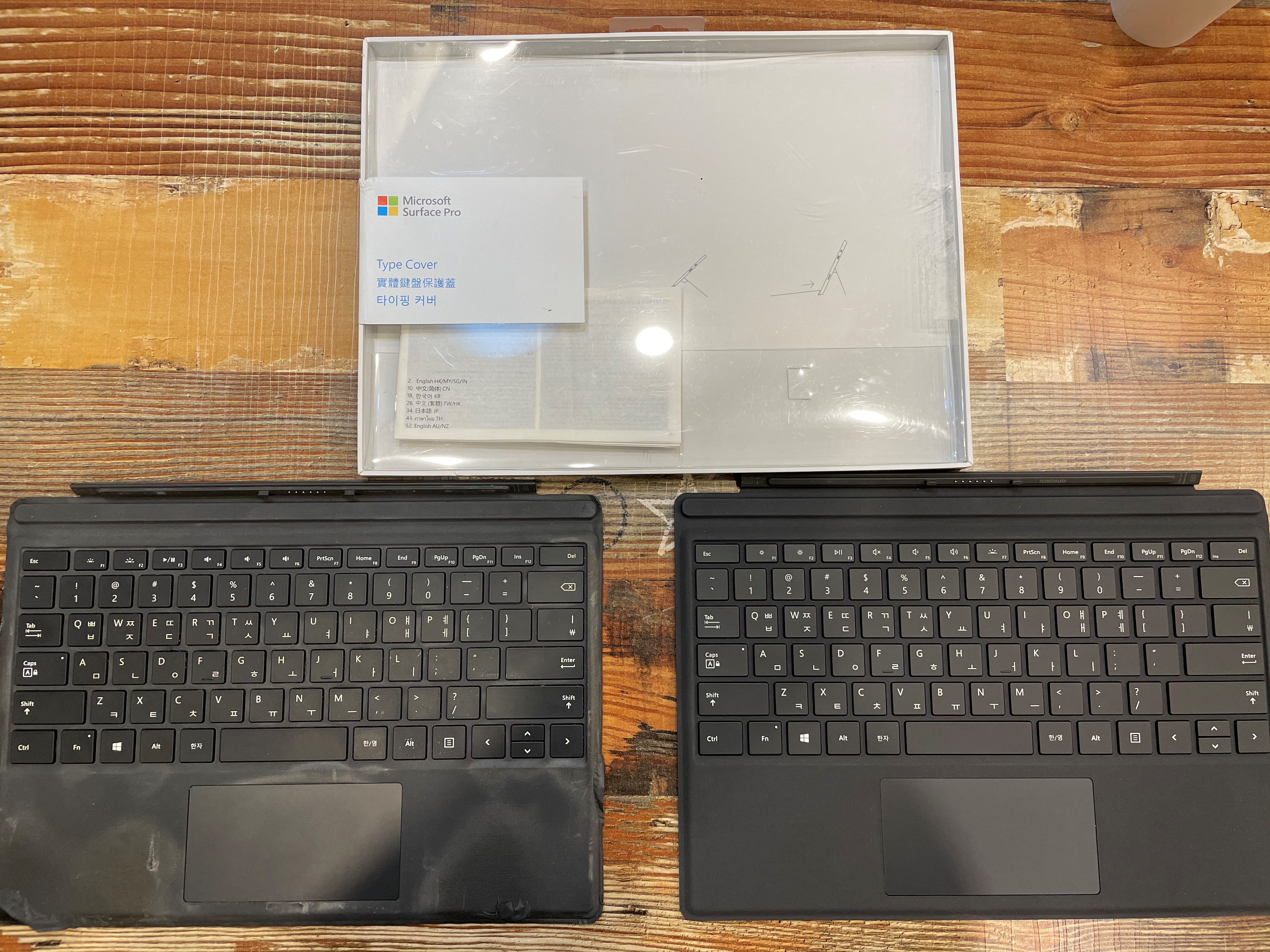 간단히 인증샷을 남긴 다음, 서피스를 켰다. 일단 (사실상)새 제품이다 보니 노트북을 새로 바꾼 느낌이 나더라. 현장에서도 확인했지만, 다시 자리에서 확인했을 때도 별다른 문제는 없어보였다. 무엇보다 큰 차이는.. 이전 커버를 쓸 땐 충전중일 땐 이따금씩 터치패드에 전기가 흐르는 게 느껴졌었는데, 이번엔 특별히 그런 느낌이 없었다. 앞으로 어떻게 될지 모르지만 확실히 이전 커버에 비해 제품 상태가 좋긴 한 듯.