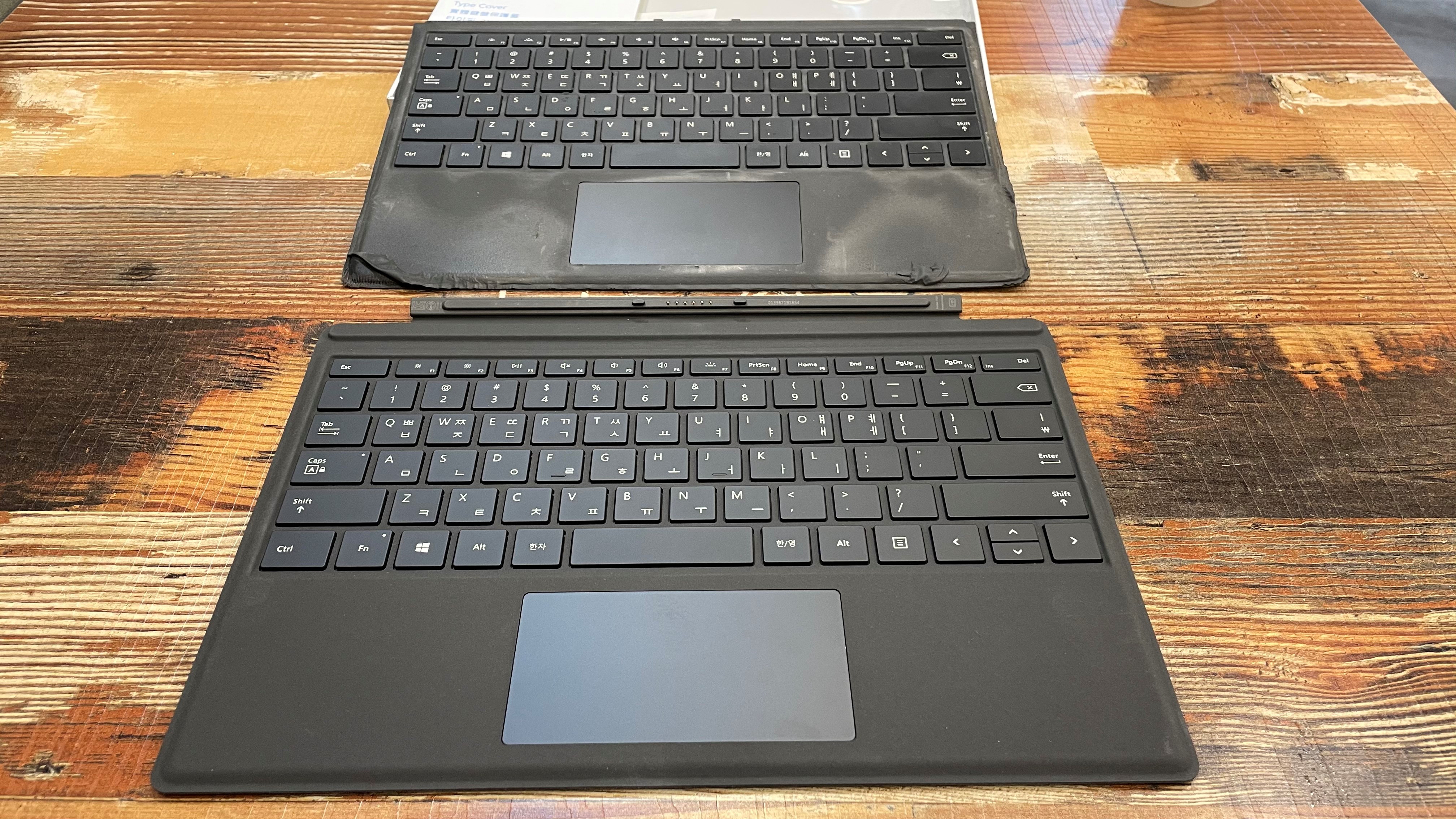 그러잖아도 처음에 살 때부터 이런저런 문제[각주:2]로 이미 구매 후 얼마 지나지 않아 리퍼 대상으로 인정받았던 제품이었다. 물론 내 부주의로 리퍼 기간을 놓치는 바람에 지금까지 그냥 쓰고 있었지만, 이래저래 타이핑 커버 때문에 짜증난 적이 한두번이 아니었다... 게다가 오래 사용하다 보니 외피? 같은것도 조금씩 뜯어지기 시작했고.