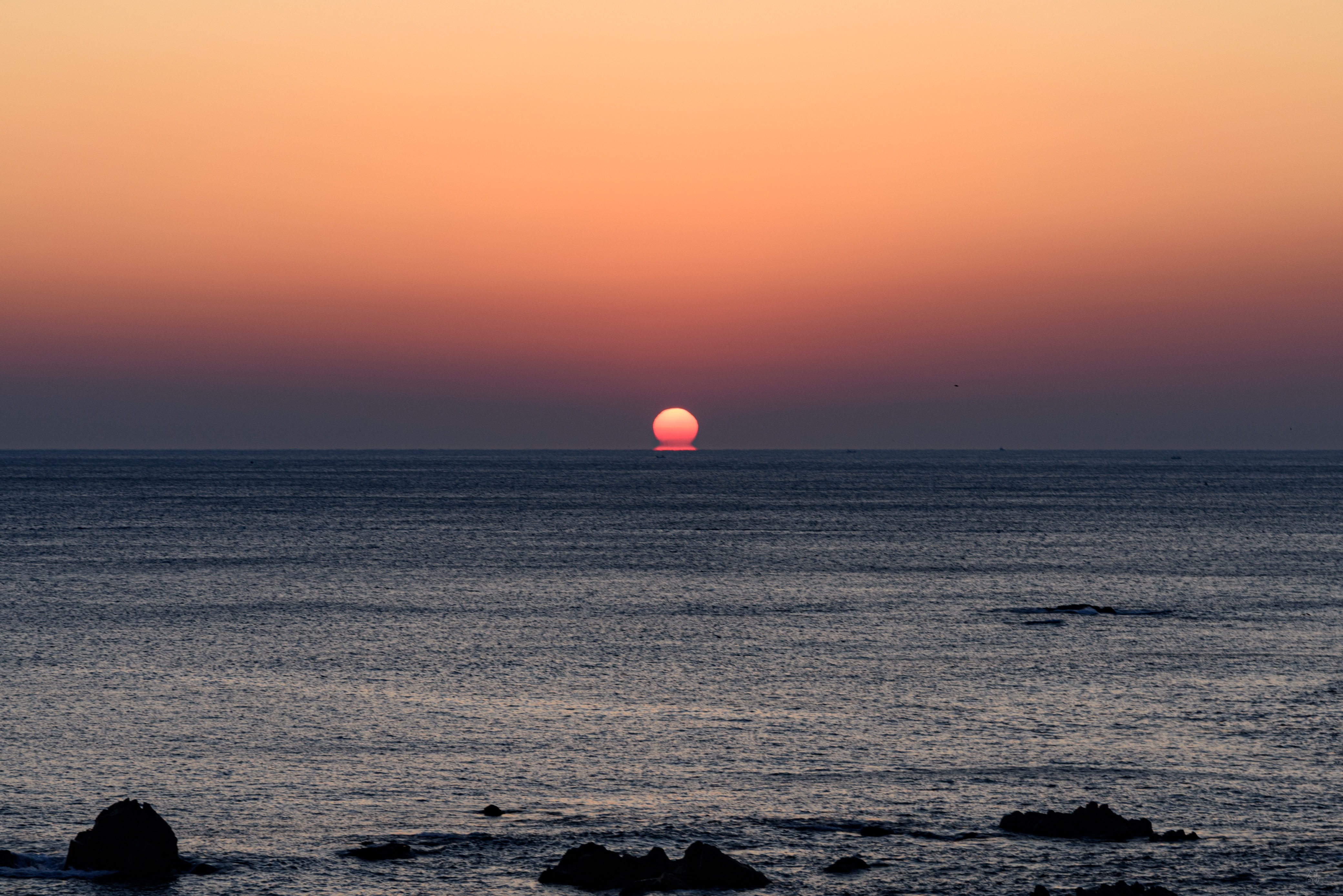 그런데, 이 날이 그렇게까지 일출보기 좋을 줄은 꿈에도 몰랐다! 눈으로는 제대로 못 봤는데, 나중에 사진으로 보니.... 이건 확실히 오여사님이셨다!! 지금껏 바다 위 Ω는 티비에서나 볼 수 있는 장면인 줄 알았는데, 내 손으로 직접 담았다...!! 순간 전율이 흐르더라!!!! +_+ 당연히 그냥 지나칠 수 없다. 이 순간만큼은 따로 꺼내어 자랑하고자 한다.