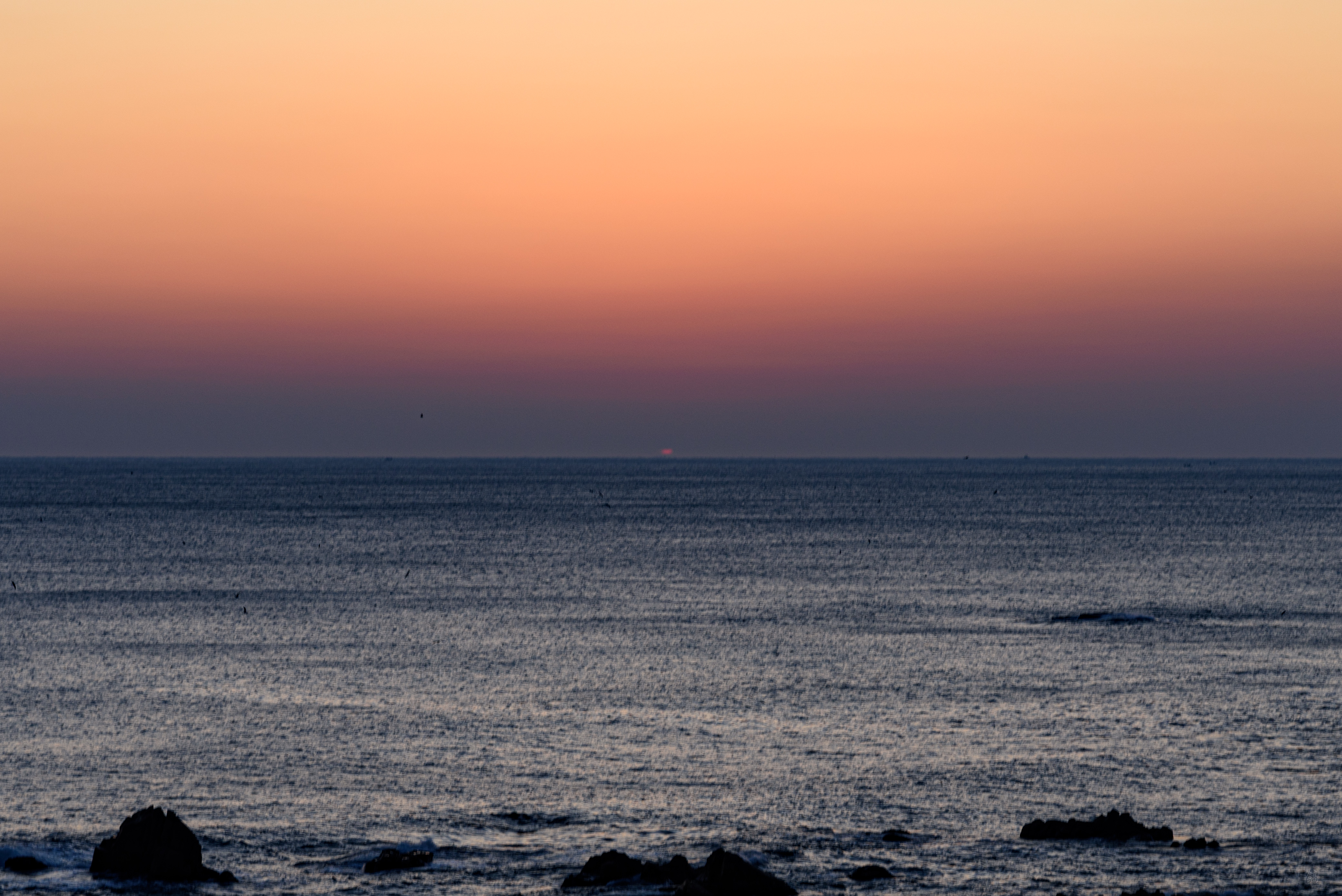 그리고 7시 43분이었던가... 저 멀리서 빨간 점이 보였다!! 해다!!!! 탄성과 함께 본격적으로 셔터를 누르기 시작했다. 비단 나만 감격스러웠던 건 아니었던 게, 빨간 점이 보이자마자 탄성과 함께 셔터음이 마구 쏟아졌다. 그 때부터 모두가 해돋이에 빠져들었다.