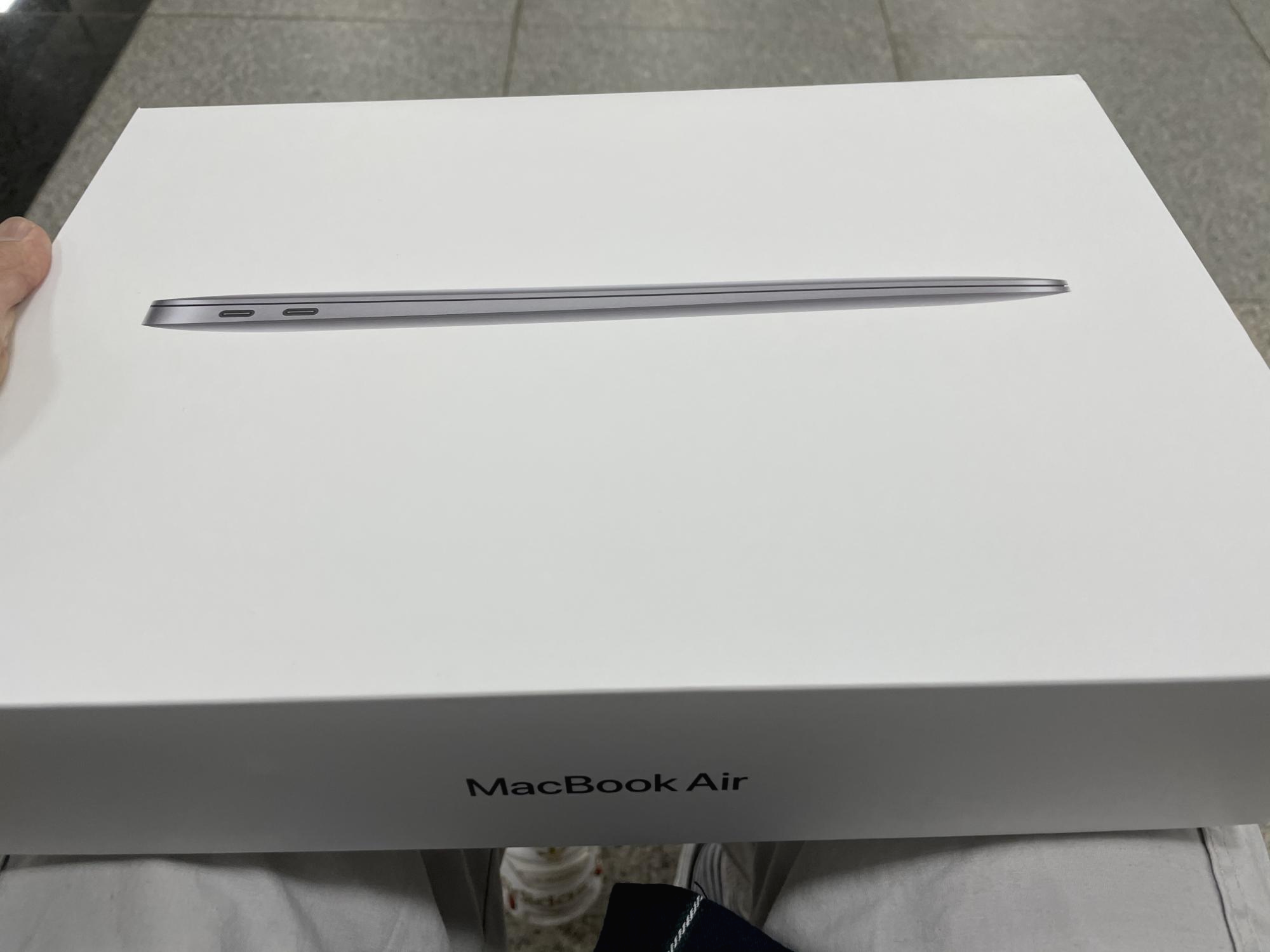 3월 말에 접어든 어느 주말, 100만원대 후반에 판매하는 글을 발견했다!! 110만원에 판매중인 미개봉 제품도 있었지만, 비록 개봉은 했더라도 조금 더 저렴하고 전면, 후면에 보호필름이 붙어있는 제품이 더 끌렸다. 글에 기재된 연락처에 구매 의사를 남겼고, 바로 거래 약속이 잡혔다. 망설임없이 옷을 입고 약속 장소로 갔다. 원래 계획했던 다른 일[각주:4]을 제쳐두고 맥북 에어를 받으러 갔다. 역시, 그 분과 함께라면 모든 게 일사천리지...