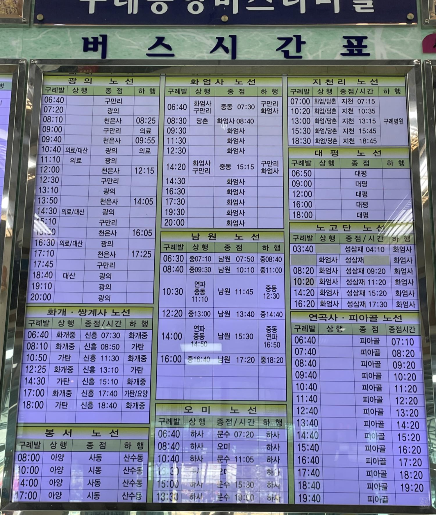 1. 구례터미널 시간표