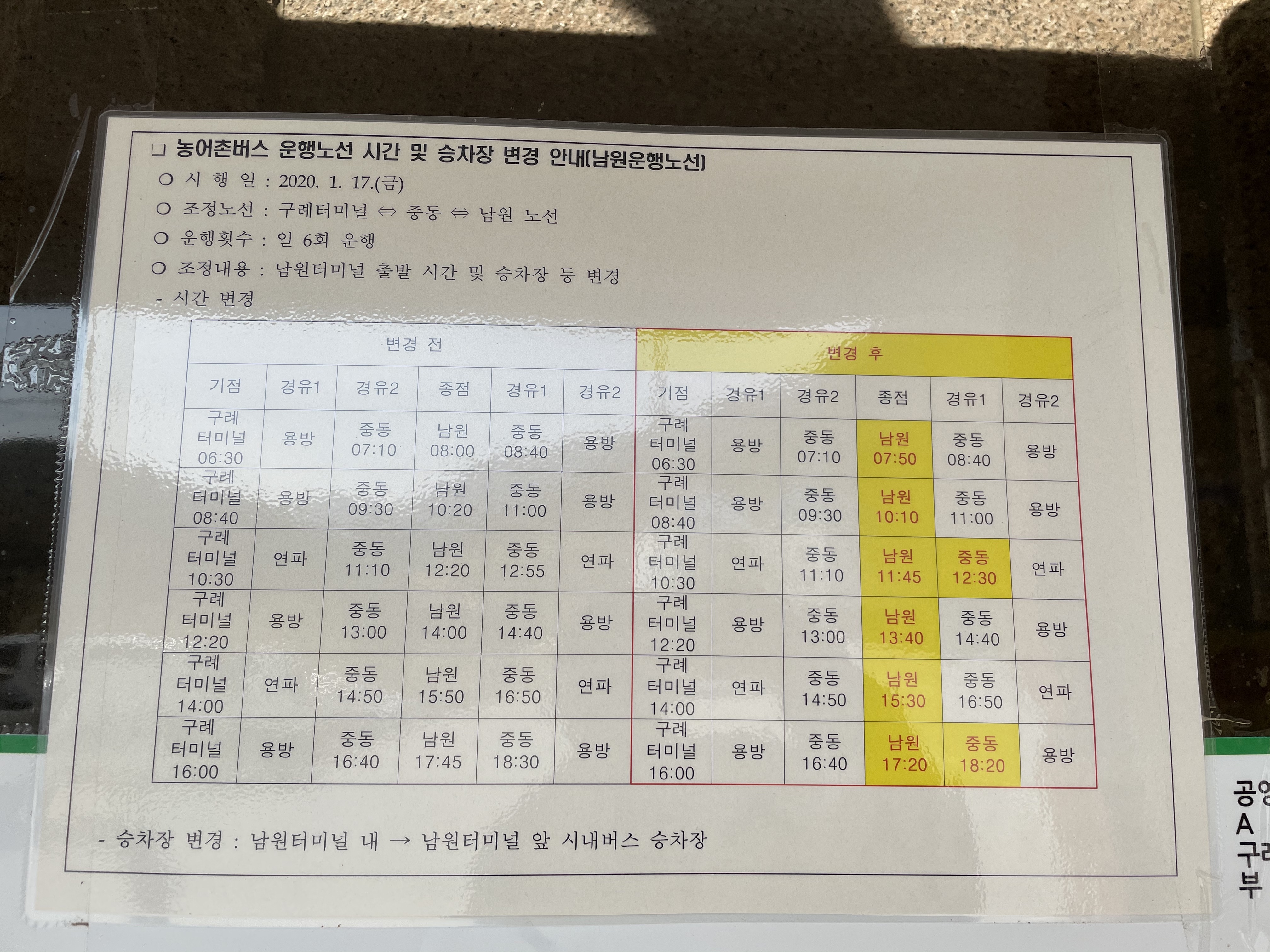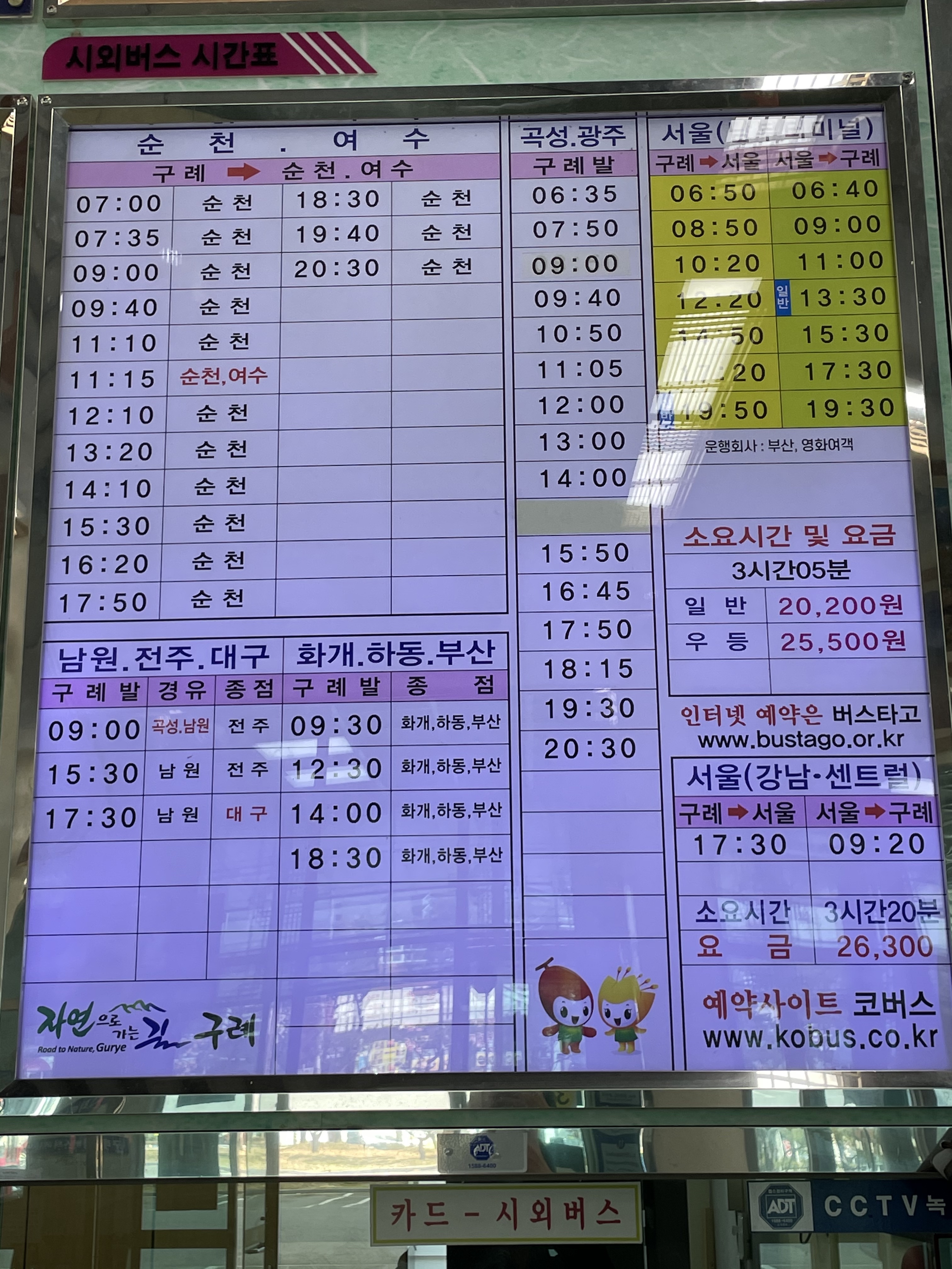 1. 구례터미널 시간표