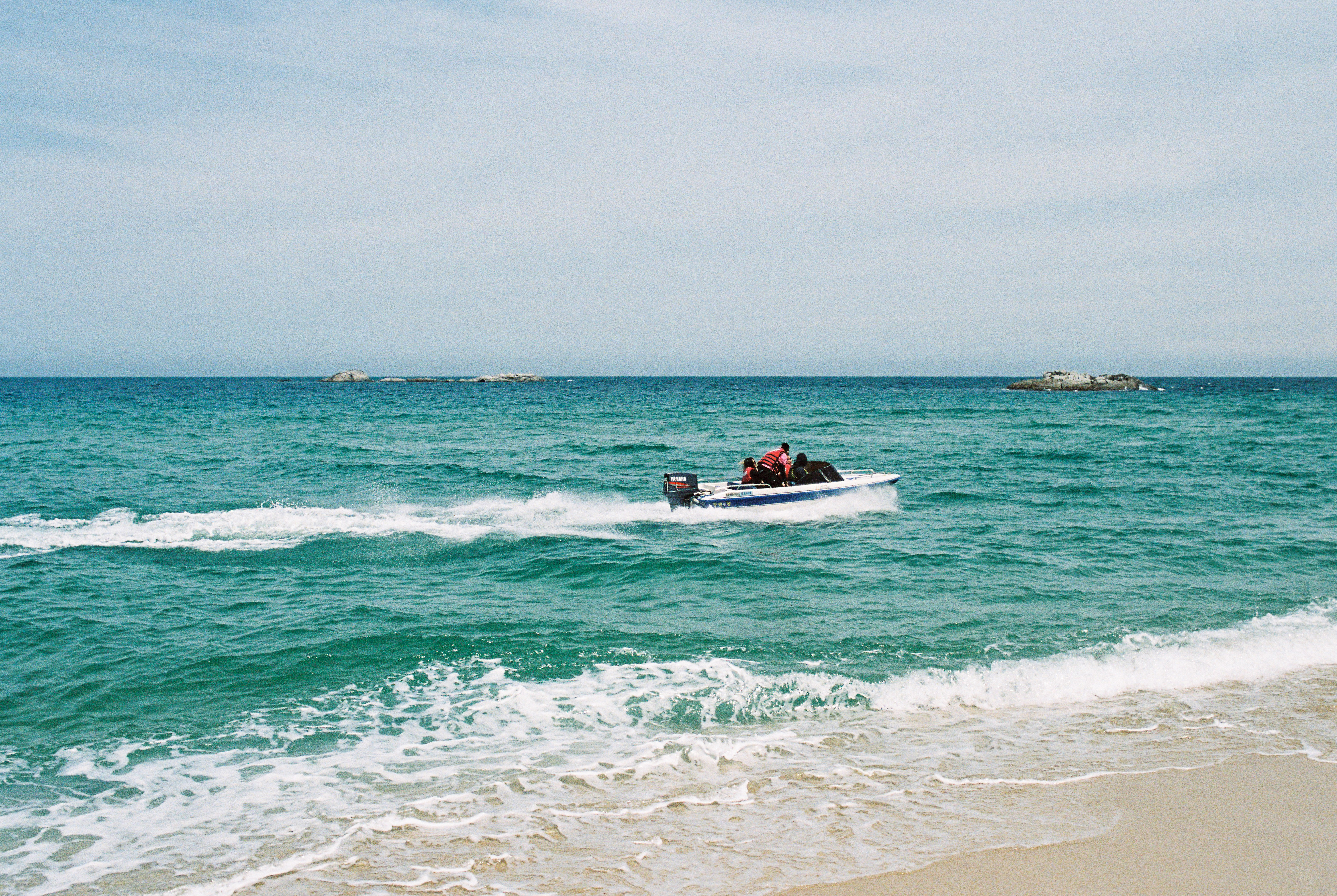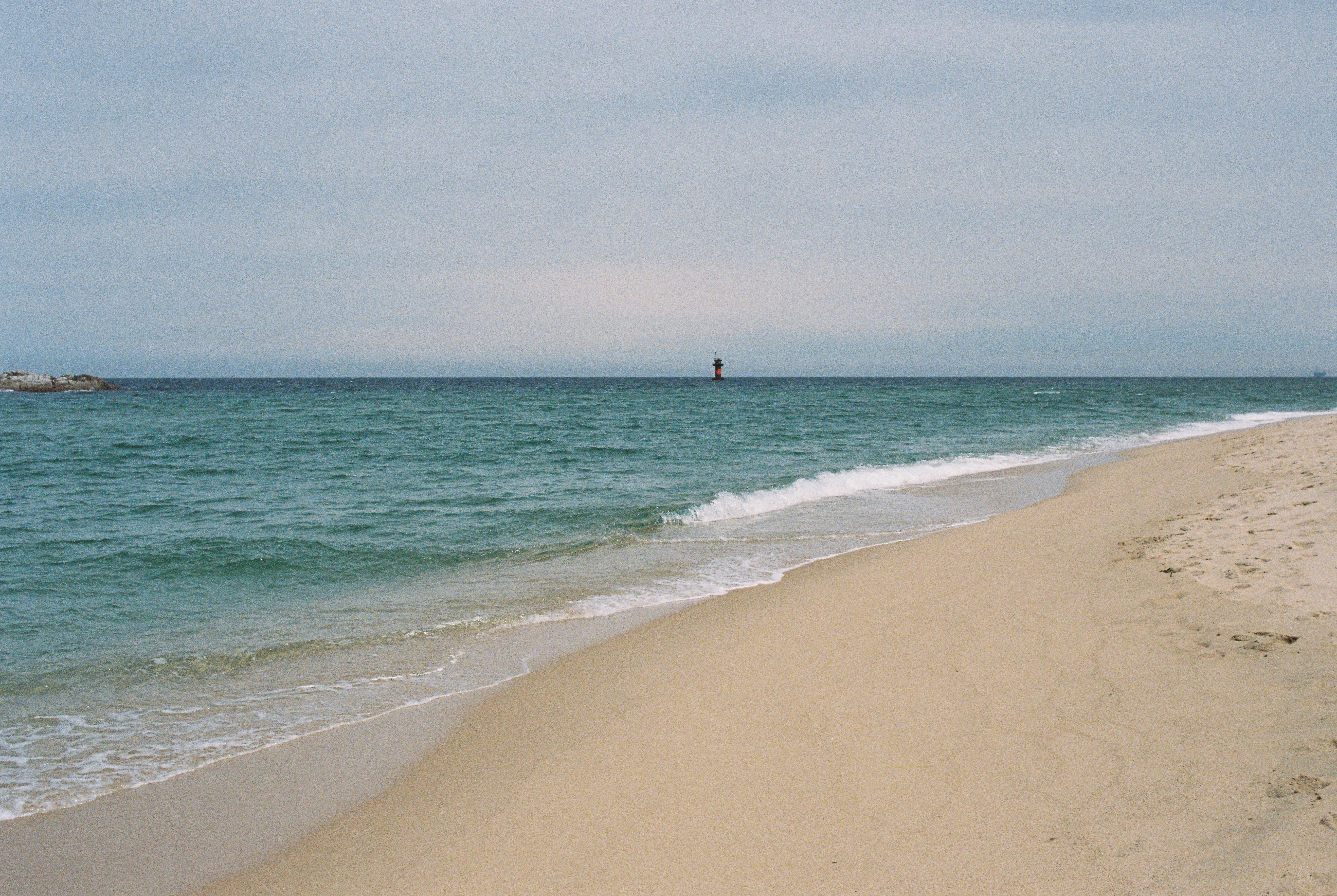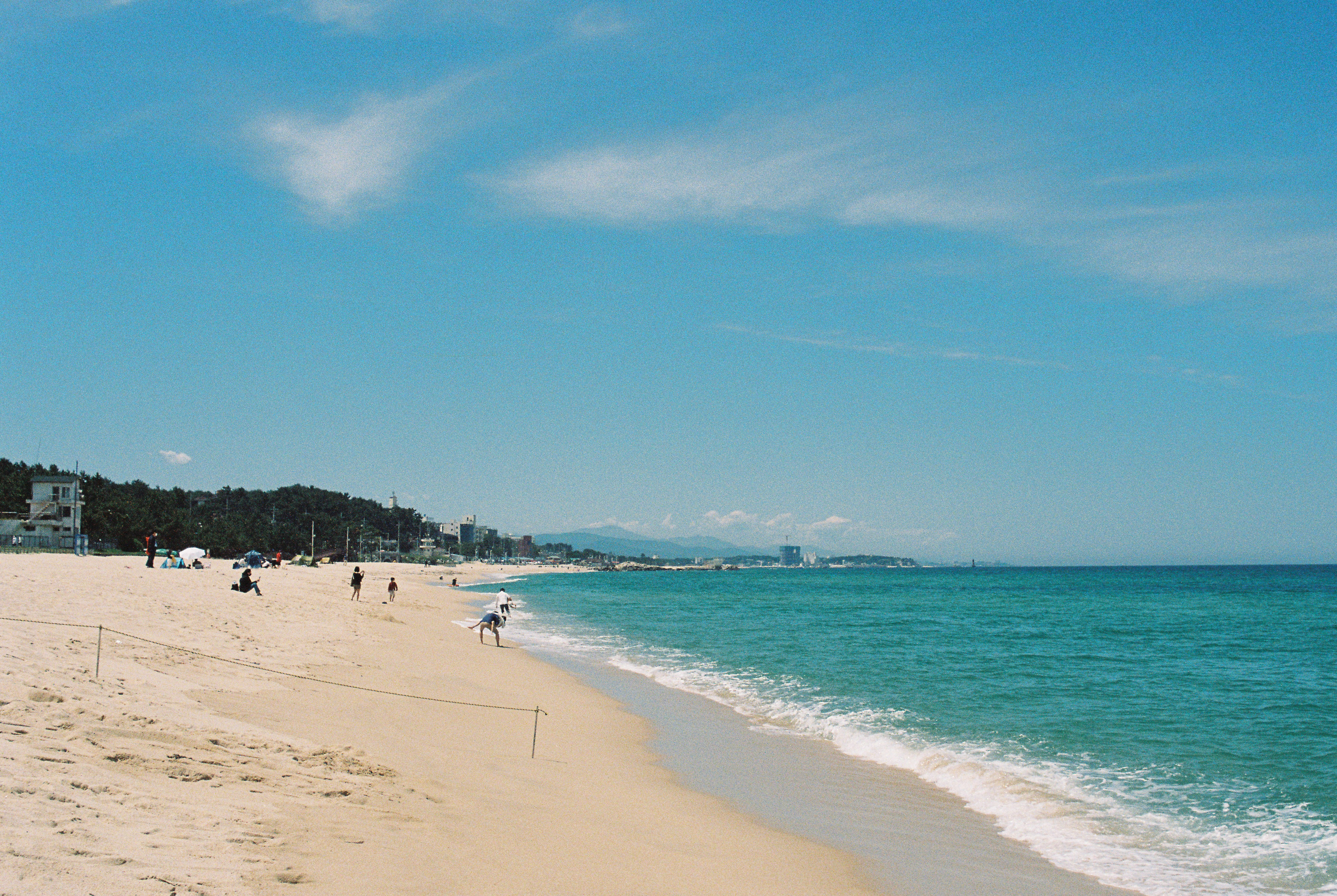 지난번 필름에 이어 찍은 사진이다. 경포해변에서 슬라이드 필름을 모두 찍은 다음, 차에 돌아가서 필름을 갈아끼운 다음, 차를 해변가 바로 앞 주차장으로 옮긴 후 다시 카메라를 들고 나왔다. 때마침 하늘이 파란 빛을 띄기 시작했고, 조금 전보다 한결 예쁜 풍경을 담을 수 있었다. 흥을 주체못해 셔터를 너무 많이 누른 감이 있긴 한데...