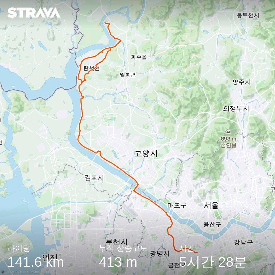 사실 올해 봄까지만 해도 내 기준 70km가 넘으면 엄청난 장거리고(물론 객관적으로도 이정도면 장거리 맞음..), 100km 넘게 달린 게 한 손에 꼽을 정도였는데, (비록 평지긴 해도)그 거리를 아득히 뛰어넘는 거리를 하루만에 달렸다! 원래는 임진각 역에서 지하철 타고 올 생각이었지만 인스타그램 피드 덕분에(?) 이래저래 자극받아 왕복으로 다녀왔네...