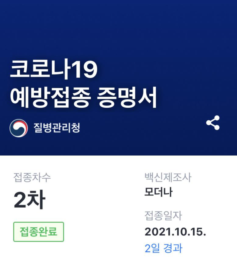 - 당초 2차 접종일은 25일이었고, 1차 접종 당일에 병원에서 일정 앞당겨서 18일까지 당겼음.