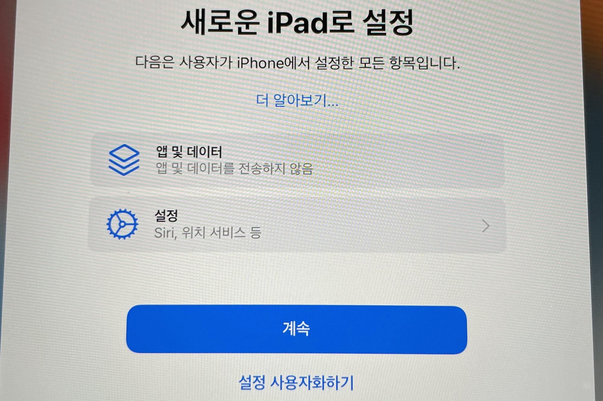 부팅을 끝내고, 기본적인 세팅에 들어갔다. 아쉽게도 아이폰과의 동기화는 불가능했다. 앱은 그렇다쳐도 알림, 키보드 등 일부 설정값은 공유됐어도 상관없을 것 같은데...