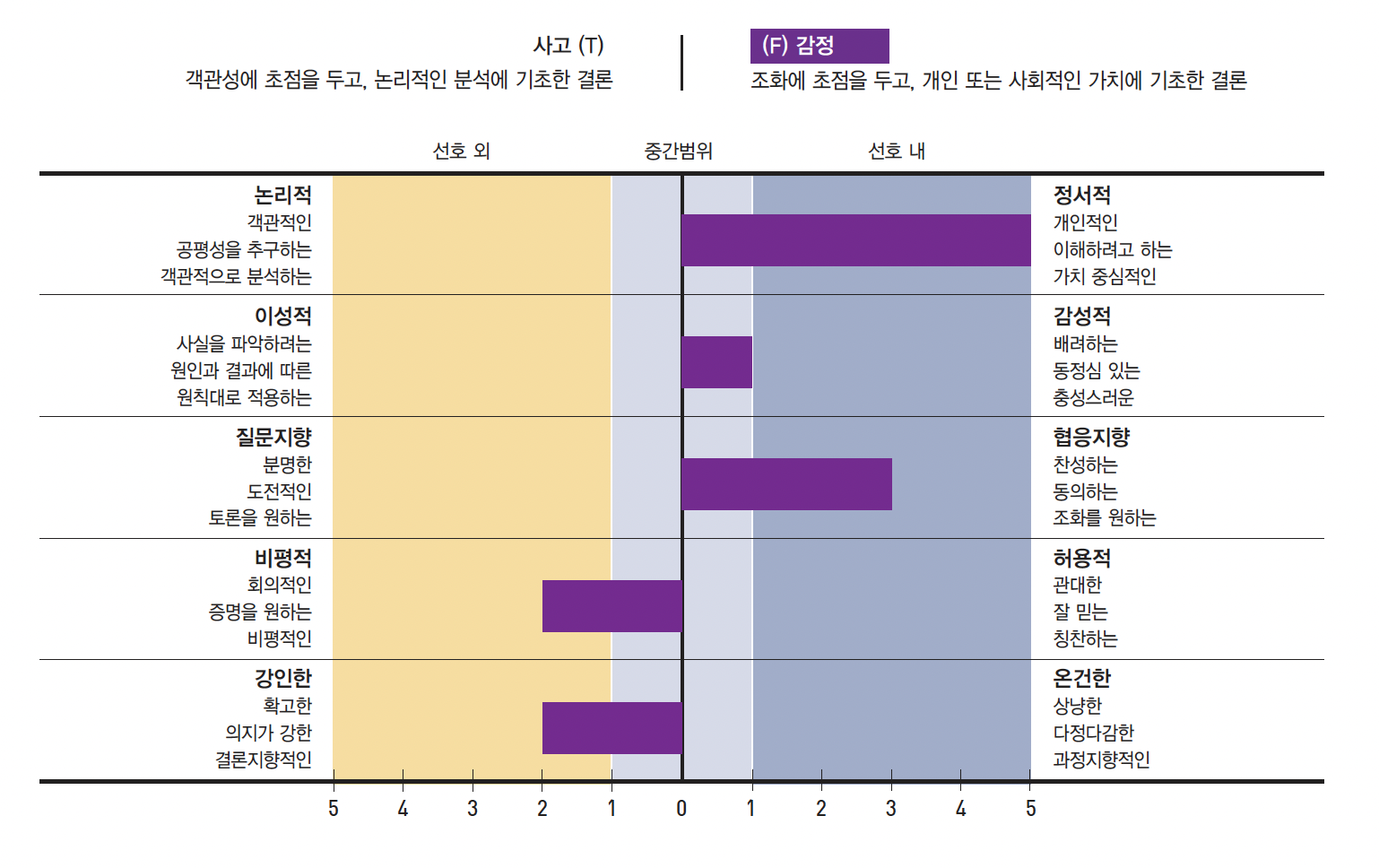 같은 중간지대라도 이 쪽은 약간 이야기가 다른게, 어떤 면에선 되게 날카롭고, 어떤 면에선 되게 협조적이다. 다만 각 개개인마다 생각이 다 다를 수 있다는 상대주의적인 마인드가 있다보니 맨 위의 막대기가 길쭉하게 뽑힌 듯.