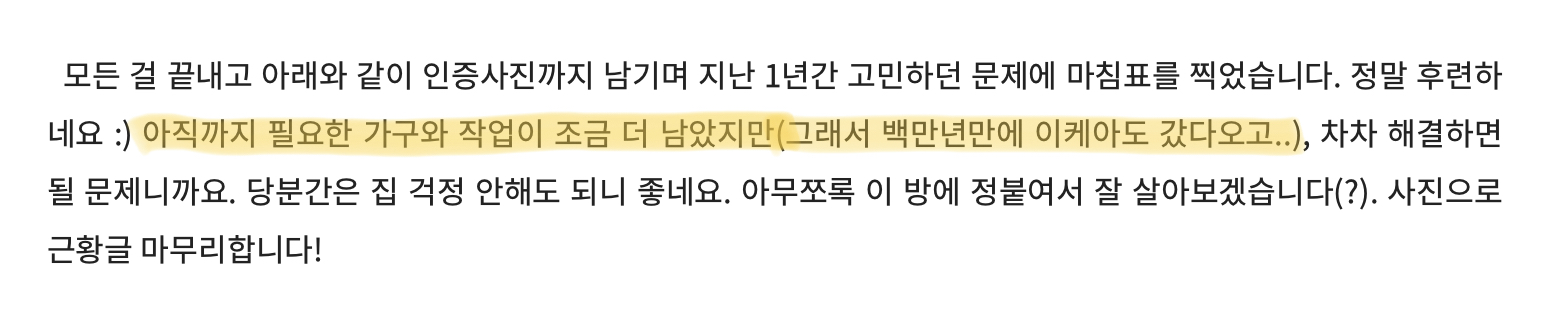 그렇다. 이 글은 이미 쓸 게 뻔했다. 한참 전부터 생각했던 것도 있고, 새 방을 구조를 보며 구상한 것도 있는데, 하나같이 내게 필요했고, 정말 하나쯤 갖추고 싶었던 물건들이었다. 그리고 이사가 끝나자마자 약 한 달 반에 걸친 기간 동안 천천히 찾아가며 하나둘 장만했다. 어떻게 보면 이때까지의 지름글 중 가장 생활밀착형(?) 지름글이 아니겠느냐...