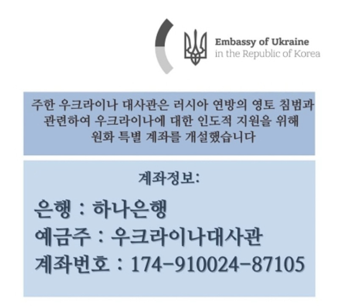 우크라이나 대사관에 기부하였습니다. 2022.03.04 12:21 Stubs 반응형 우크라이나 대사관에 직접 기부할 수 있는 방법이 있어계좌이체로 기부하였습니다.비록 많은 돈은 아니지만, 그 분들께힘이 되었으면 합니다.이체 방법 우크라이나의 평화를 기원합니다.🇺🇦🙏 공유하기 게시글 관리 Echte Liebe 'Stubs' 카테고리의 다른 글 어? (0) 2022.10.27 그간의 지름 이야기. (19) - 샤오미 물건들 (스탠드, 무드등, 로봇청소기) (14) 2022.04.17 그간의 지름 이야기. (16) - 방에다 설치한 물건들. (10) 2022.02.06 이사했습니다.. (8) 2021.12.19 시류에 편승하여 심심풀이 삼아 해본 테스트들(?) (6) 2021.12.06 댓글 공유하기 다른 글 댓글 이 글 공유하기 구독하기 구독하기 카카오톡 카카오톡 라인 라인 트위터 트위터 Facebook Facebook 카카오스토리 카카오스토리 밴드 밴드 네이버 블로그 네이버 블로그 Pocket Pocket Evernote Evernote 다른 글 어? 어? 2022.10.27 그간의 지름 이야기. (19) - 샤오미 물건들 (스탠드, 무드등, 로봇청소기) 그간의 지름 이야기. (19) - 샤오미 물건들 (스탠드, 무드등, 로봇청소기) 2022.04.17 그간의 지름 이야기. (16) - 방에다 설치한 물건들. 그간의 지름 이야기. (16) - 방에다 설치한 물건들. 2022.02.06 이사했습니다.. 이사했습니다.. 2021.12.19 다른 글 더 둘러보기