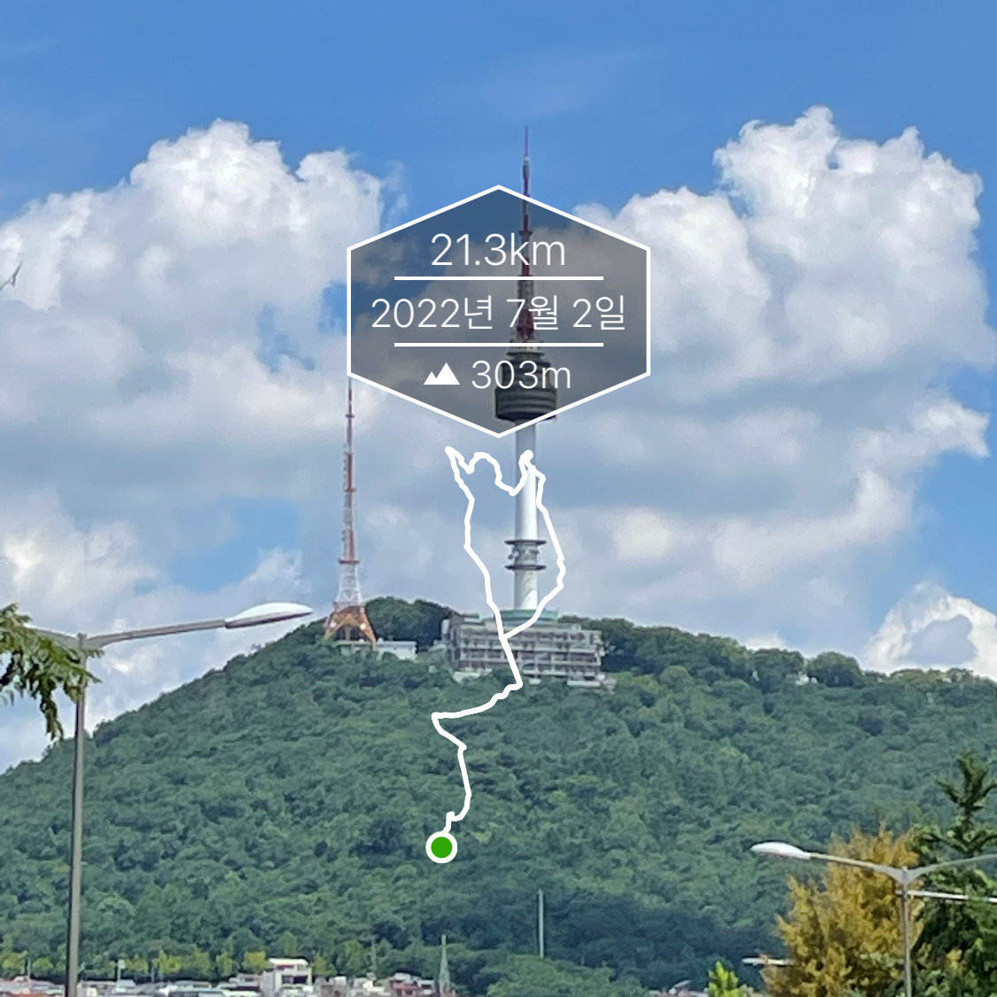 반면 이 날은 완전히 땡볕 😱 분명 오전에 갔는데, 남산에 올라갔던 10시 반? 쯤엔 이미 땡볕에 30도를 훌쩍 넘었다. 게다가 이 날 고글까지 잃어버렸 -ㅅ-; 그래도 그 날씨 속에서 무정차로 완주한 나 자신, 칭찬해!