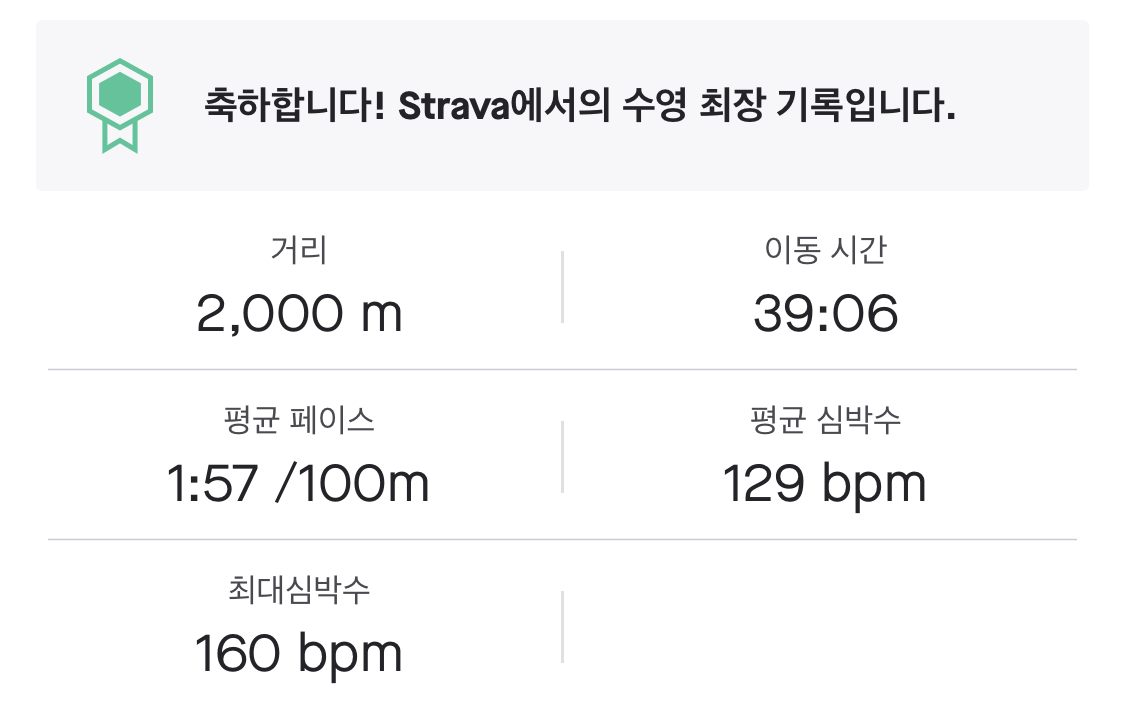 5월 말? 정도였는데, 거의 3년만에 50m 수영장에 갔었다. 올림픽 수영장은 처음이었는데 시설이 정말 좋았다. 그리고 내가 2000m를 소화할 줄 몰랐음. 다음에 또 가야지.