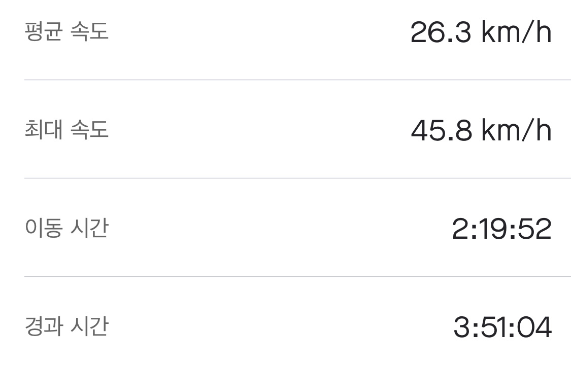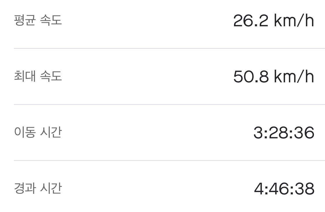 5. 막상 완주하고 보니 평소에 밟았을 때랑 평속이랑 케이던스도 그렇게 크게 차이 나진 않는다!? 지금까지 얼마나 비효율적인 라이딩을 한 건지..
