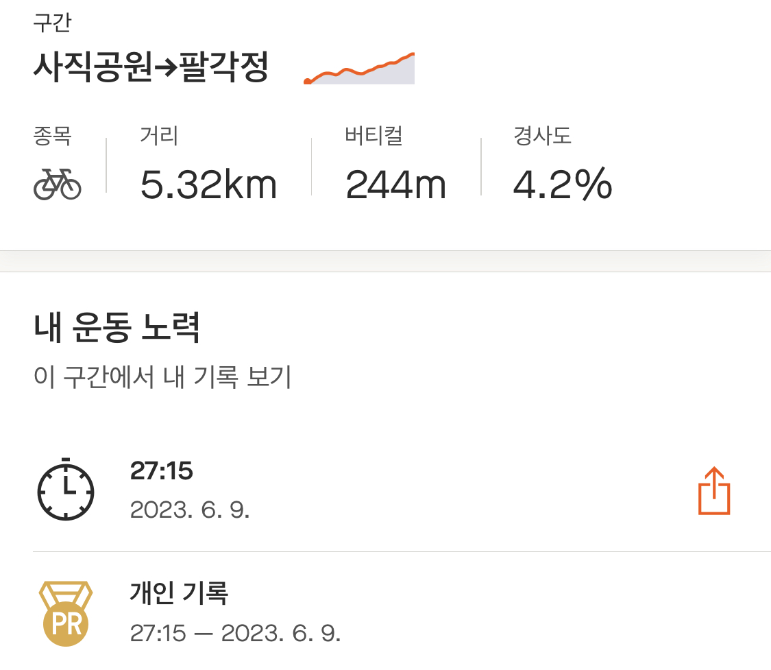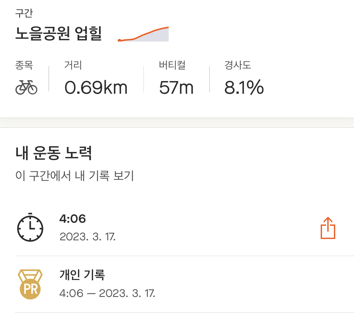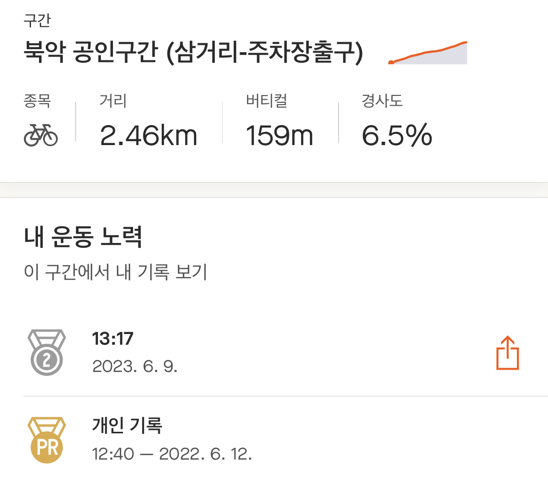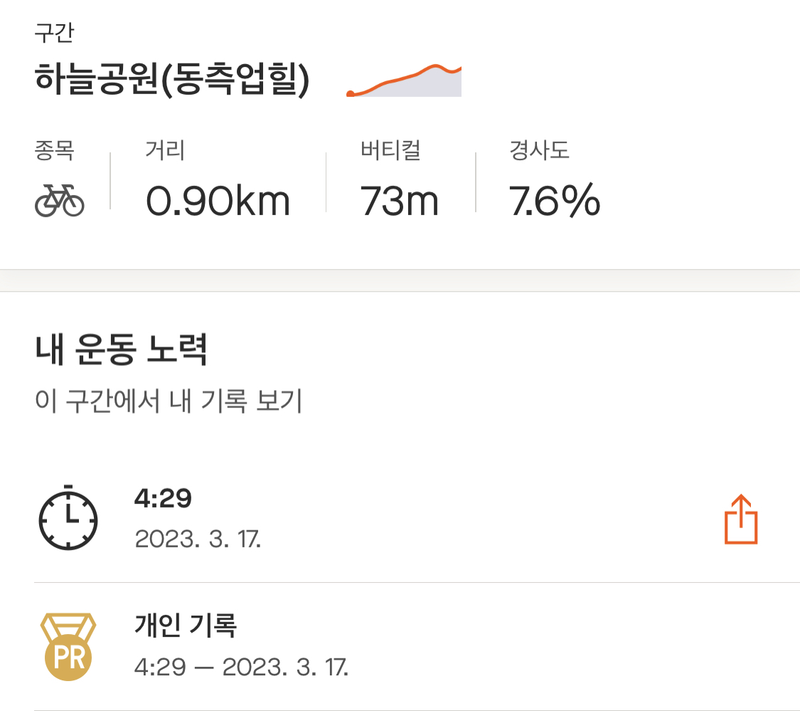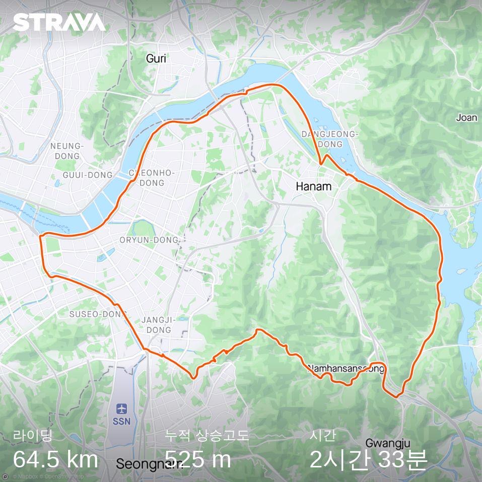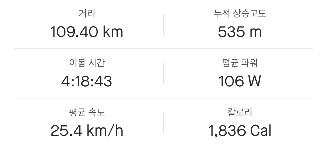 집으로 돌아가며 생각해 봤는데, 최근 러닝을 틈틈이 했던 게 큰 도움이 됐던 것 같다. 비록 기록 신경 안 쓰고 완주에 초점을 맞추긴 했어도 생각보다 너무 무난히 올라간 느낌(?). 그리고 후방센서 하나 달고 다니 확실히 뒤를 대비할 수 있어서 심리적으로 안정됐던 것도 영향이 있었던 듯하다.