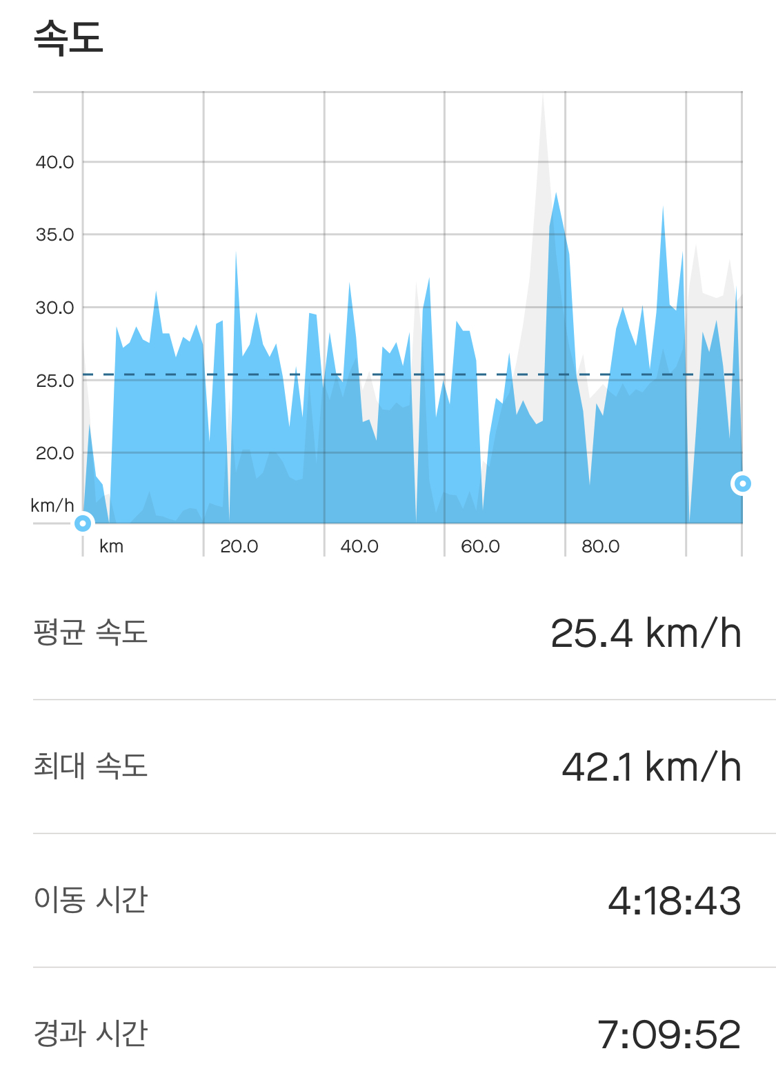 라이딩은.. 결론부터 말하자면 페이스 조절 실패. 초반에 약간 오버페이스 하는 바람에 후반에 털렸다. 특히 파주에서 역풍에 털렸는데, 밥 먹고 나서도 100% 회복이 안 됐지만 어떻게든 축구를 볼 마음이 있어 조금 서둘렀다.