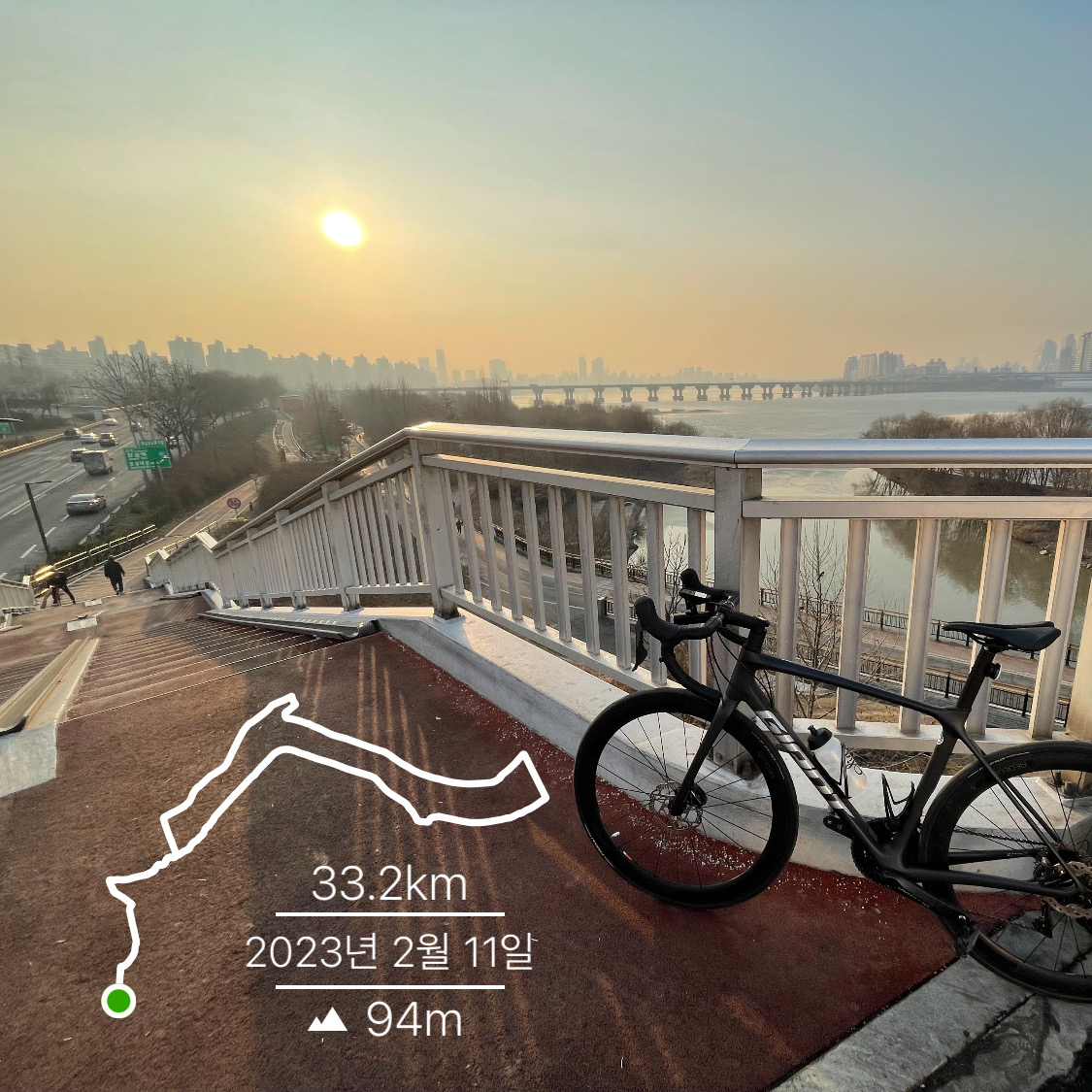 물론 아쉬움도 남았는데, 망할 노면상태 때문에 튜브가 찢어진 건 다시 생각해도 어이가 없다. 근처에 자전거가게가 있어서 다행이었지 없었으면 그냥 라이딩 종료였음.. 게다가 오버홀 하면서 뭘 건드렸는지 몰라도 기어비까지 틀어지는 바람에 변속이 매끄럽지 못했고, 체인 갈리는 소리가...🤦♂️ 맘 편히 변속하지 못해 적잖이 성가셨음. 그 외에 주변 안 살피고 자도로 튀어 들어오는 사람들은 덤..
