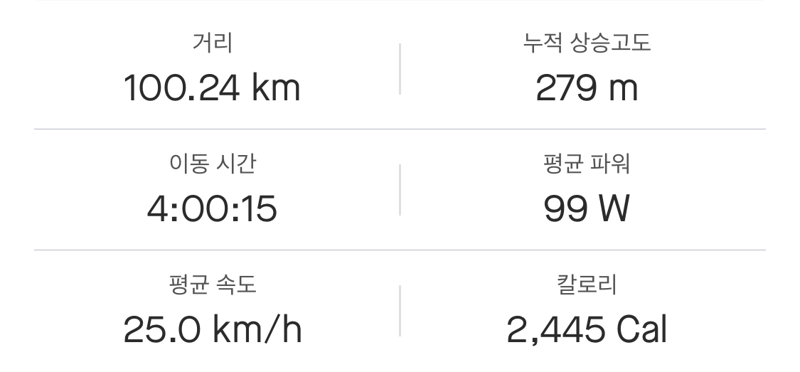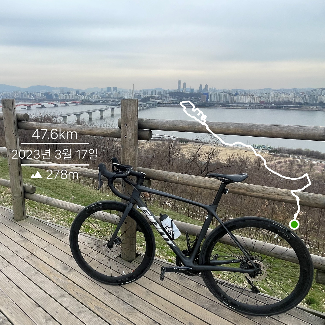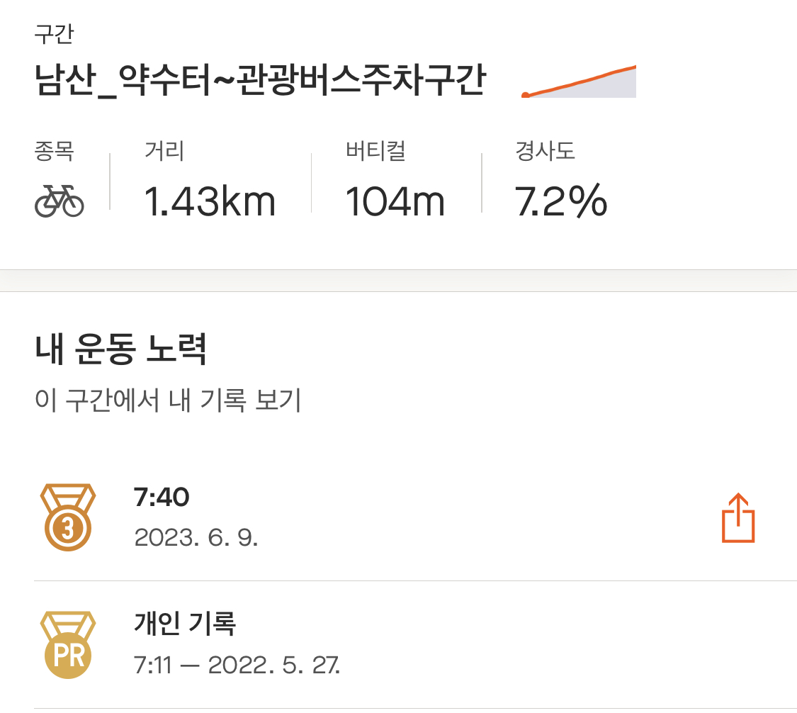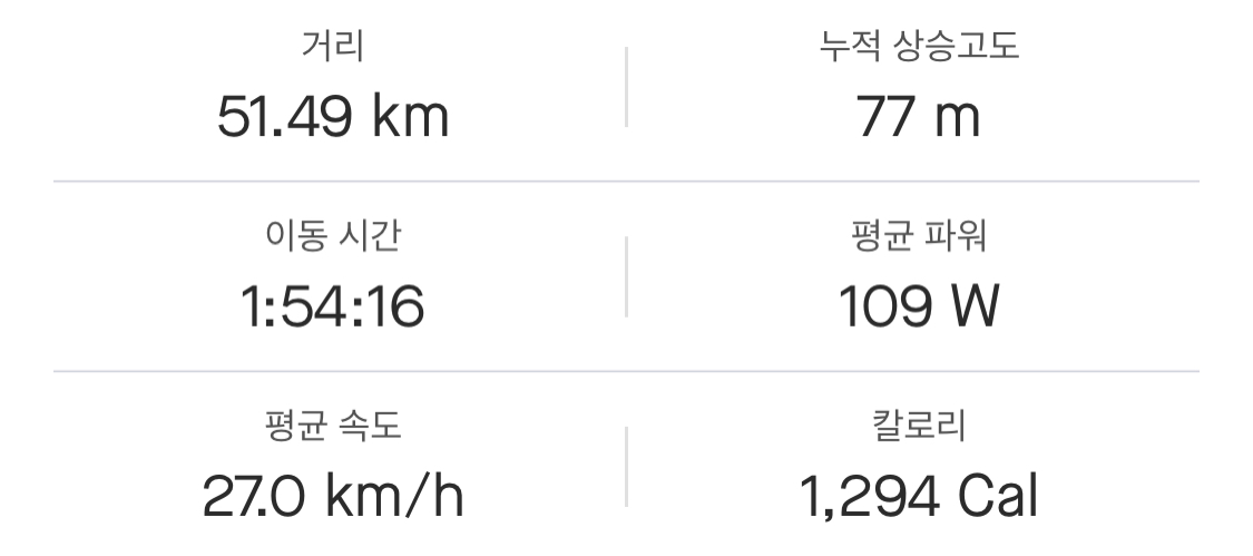 집으로 돌아가며 생각해 봤는데, 최근 러닝을 틈틈이 했던 게 큰 도움이 됐던 것 같다. 비록 기록 신경 안 쓰고 완주에 초점을 맞추긴 했어도 생각보다 너무 무난히 올라간 느낌(?). 그리고 후방센서 하나 달고 다니 확실히 뒤를 대비할 수 있어서 심리적으로 안정됐던 것도 영향이 있었던 듯하다.