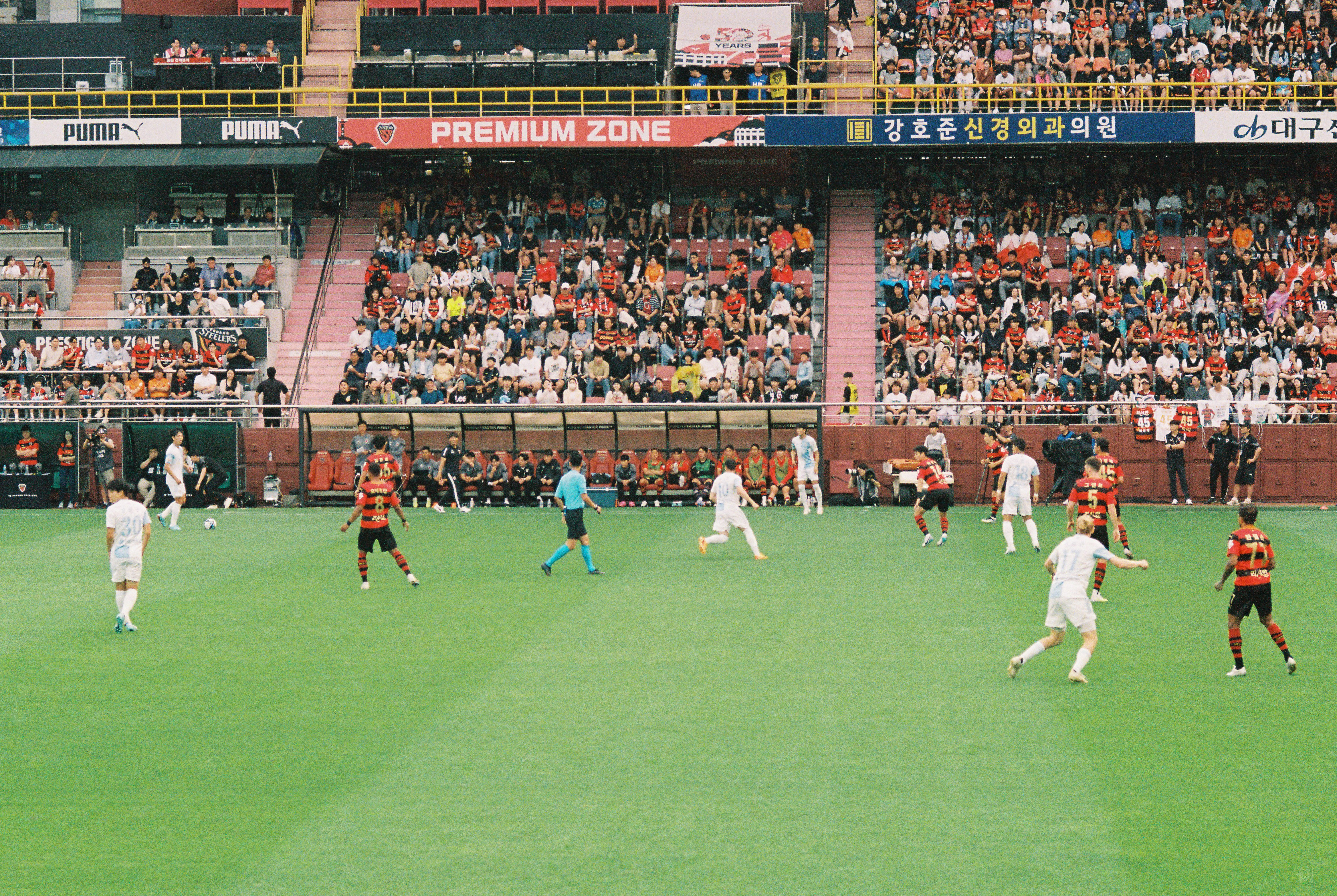 그야말로 Kodak Portra 800에 축구를 잔뜩 담아왔다. 동해안더비부터 수원전까지.. 특히 동해안더비는 정말 기대하고 갔었고, 관중이 많이 왔기에 재밌었다. 결과만 빼고.. ㅠ_ㅠ 포항 잘했는데 사실상 조현우한테 졌지... 그 여파가 수원 원정까지 이어져 수원 삼성전에선 영 경기력이 좋지 못했던 듯.