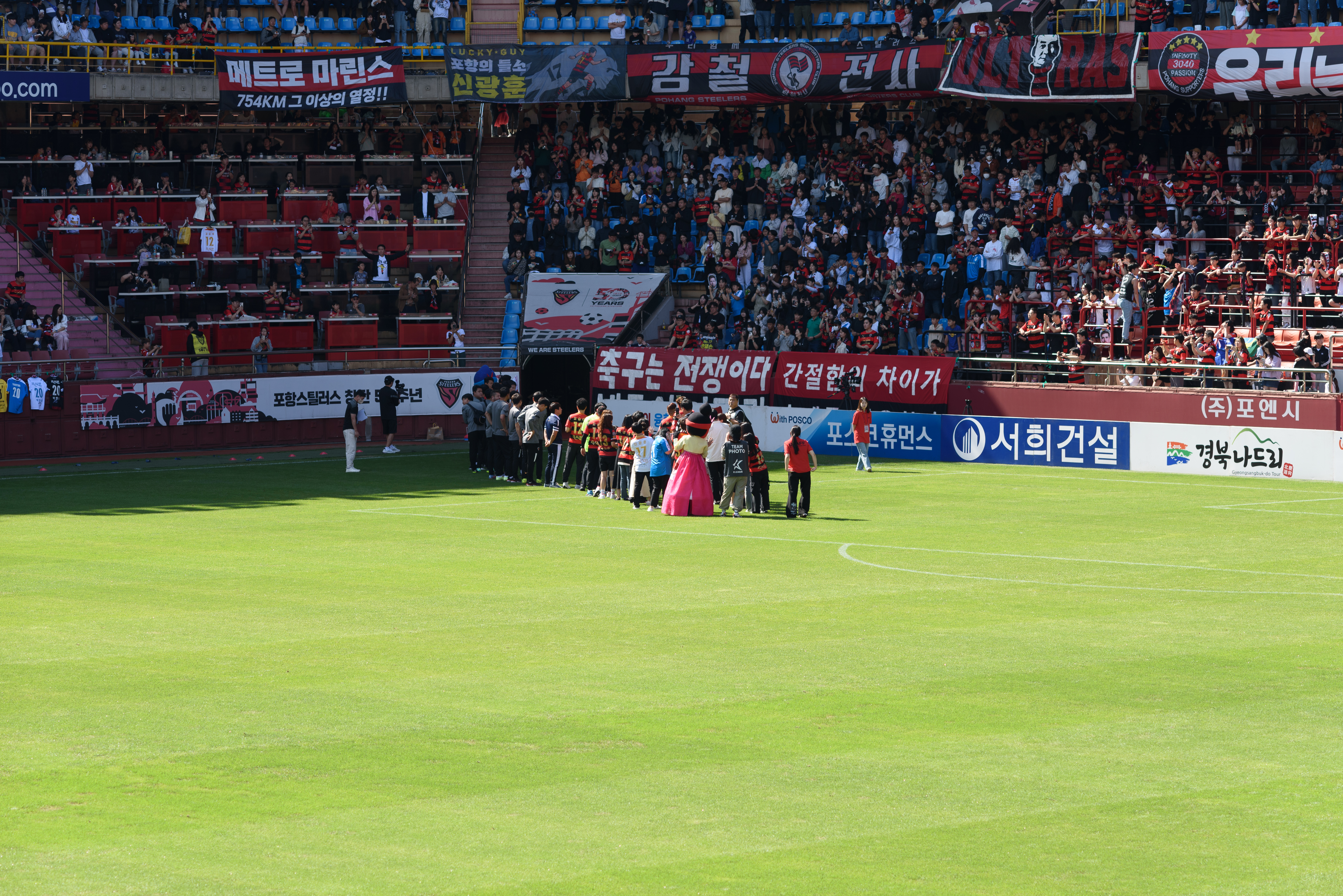 큰 기대를 품고 추석연휴에 본가에 내려가 푹 쉬었다. 그리고 경기 당일, 본가에서 출발해 포항역에 도착했고, 지체 없이 스틸야드로 향했다. 비가 쏟아질 듯이 축축했던 올여름 동해안더비와는 다르게 새파란 하늘 아래 뜨거운 햇살이 상쾌하게 내려쬐고 있었다. 이런 맑은 날엔 언제나 좋았다구..!