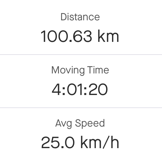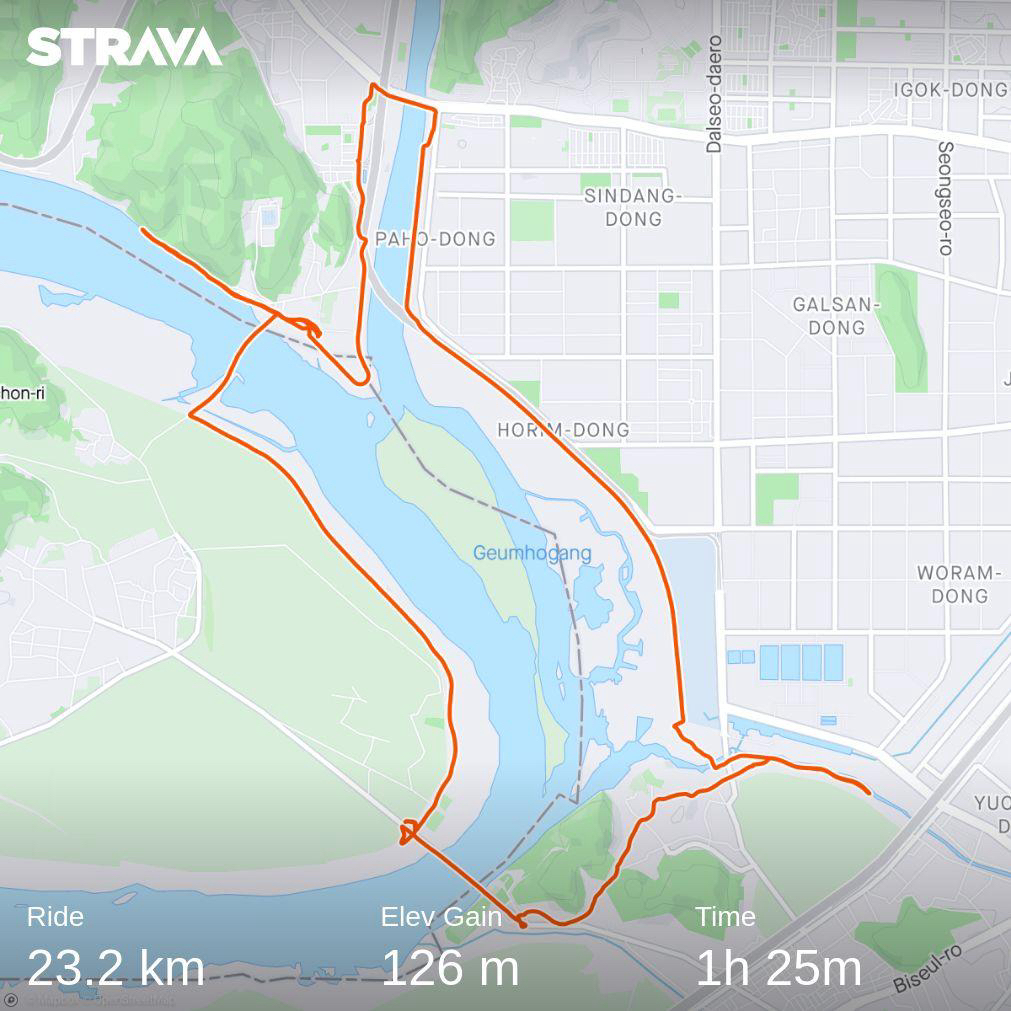 덕분에 평속도 25까지 회복하여 최소한의 밥값(?)은 했고, 100km도 정말 오랜만에 달성! 여러모로 성취감이 큰 라이딩을 끝냈다.