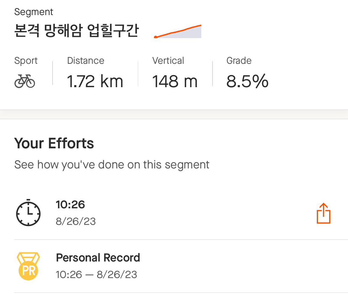 아무쪼록 한 스테이지씩 헤쳐나가는 느낌이라 좋다. 비록 느리긴 해도 업힐이 늘긴 했네😁 다음엔 또 어디로 갈까..!