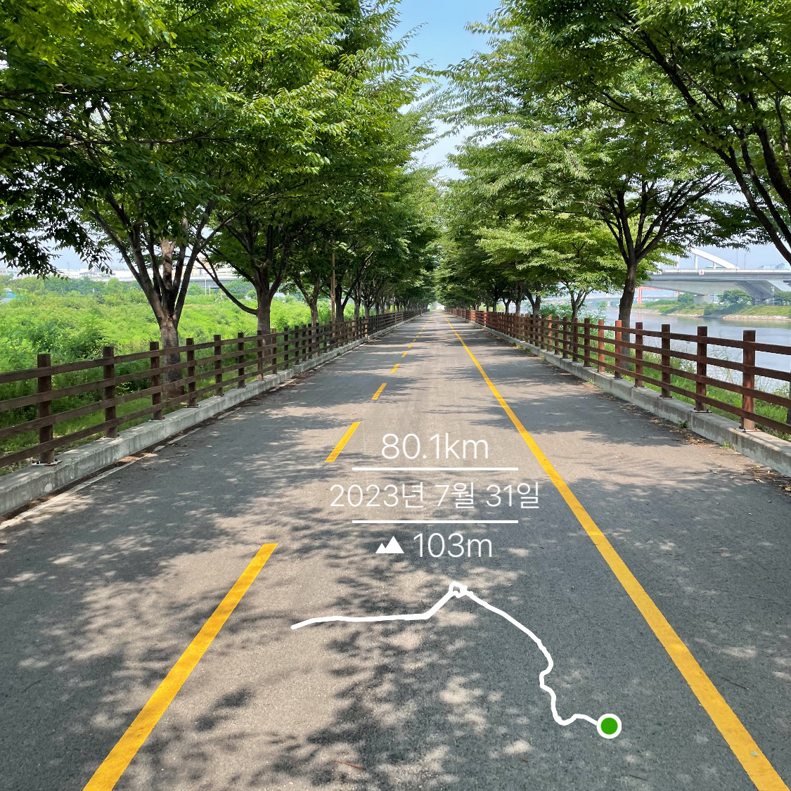 게다가 북한강철교 지나기 전 잠깐 쉬면서 포항의 우승 순간까지 직접 눈으로 확인하니(10년만😭😭) 나까지 기분이 업되어 나머지 구간에서도 정말 낮에 XX하던 애가 맞나 싶을 정도로 쭉쭉 밟아나갔다.