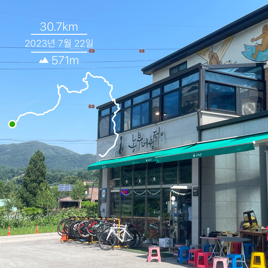 다행히도 중미산 천문대 넘자마자 내리막이 시작됐는데, 갑자기 바람이 마구 불기 시작했고, 잔뜩 긴장한 상태로 다운힐 완료했다. 중간에 막국수 먹고 아신역으로 복귀하며 오늘 라이딩 끝. 다음에는 꼭 무정차로 벗고개, 중미산 완주해야지.😤 물론 좀 오래 걸릴 느낌이지만😢