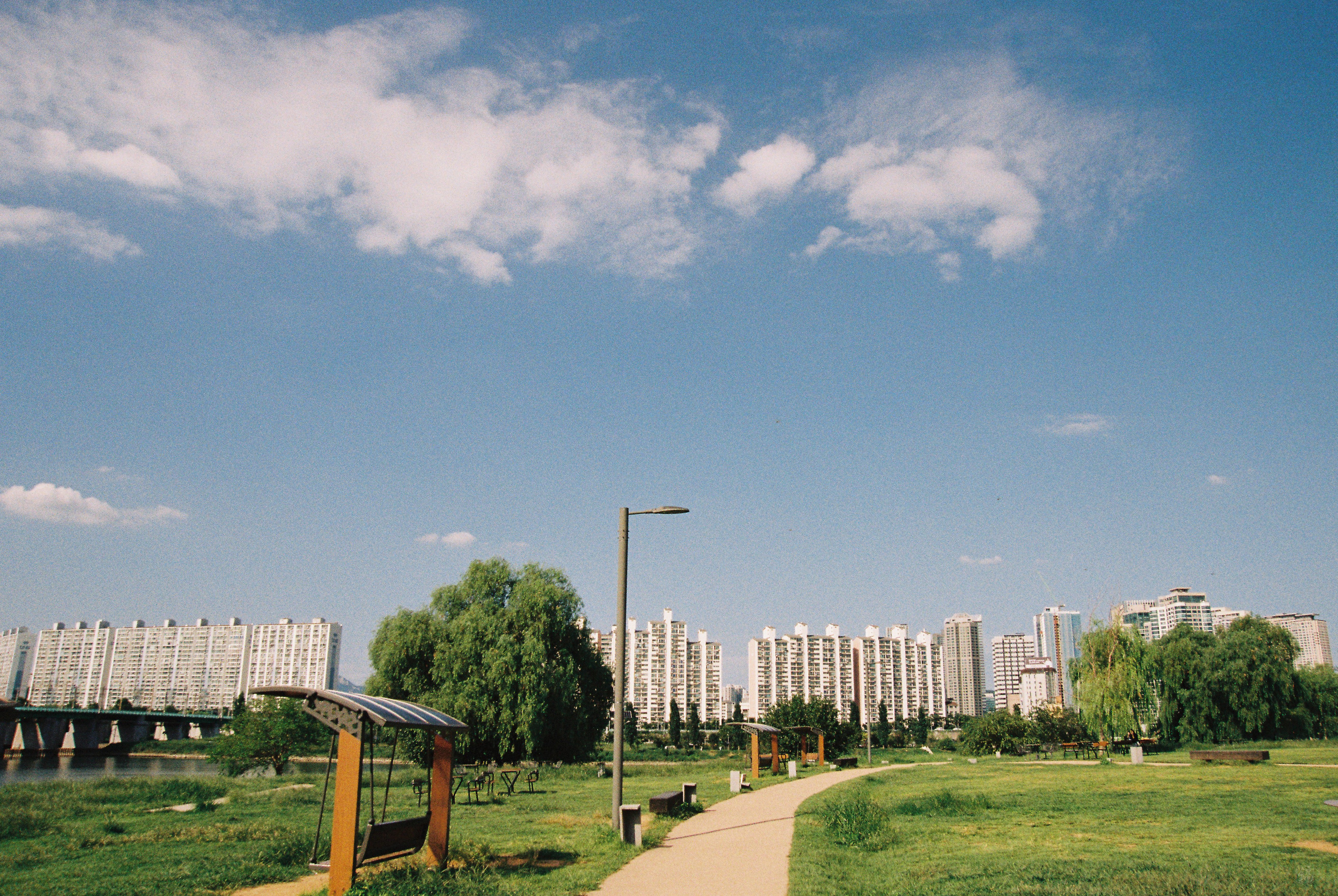 필름은 코닥 골드고, 9월 초순의 늦여름(...) 풍경이 아주 잘 담긴 듯. 이 날씨는 도저히 가을 날씨라고 할 순 없지만, 그래도 9월 아니랄까봐 하늘이 꽤나 높아졌다. 그렇기에 어딜 갖다대도 그림이 나왔다!