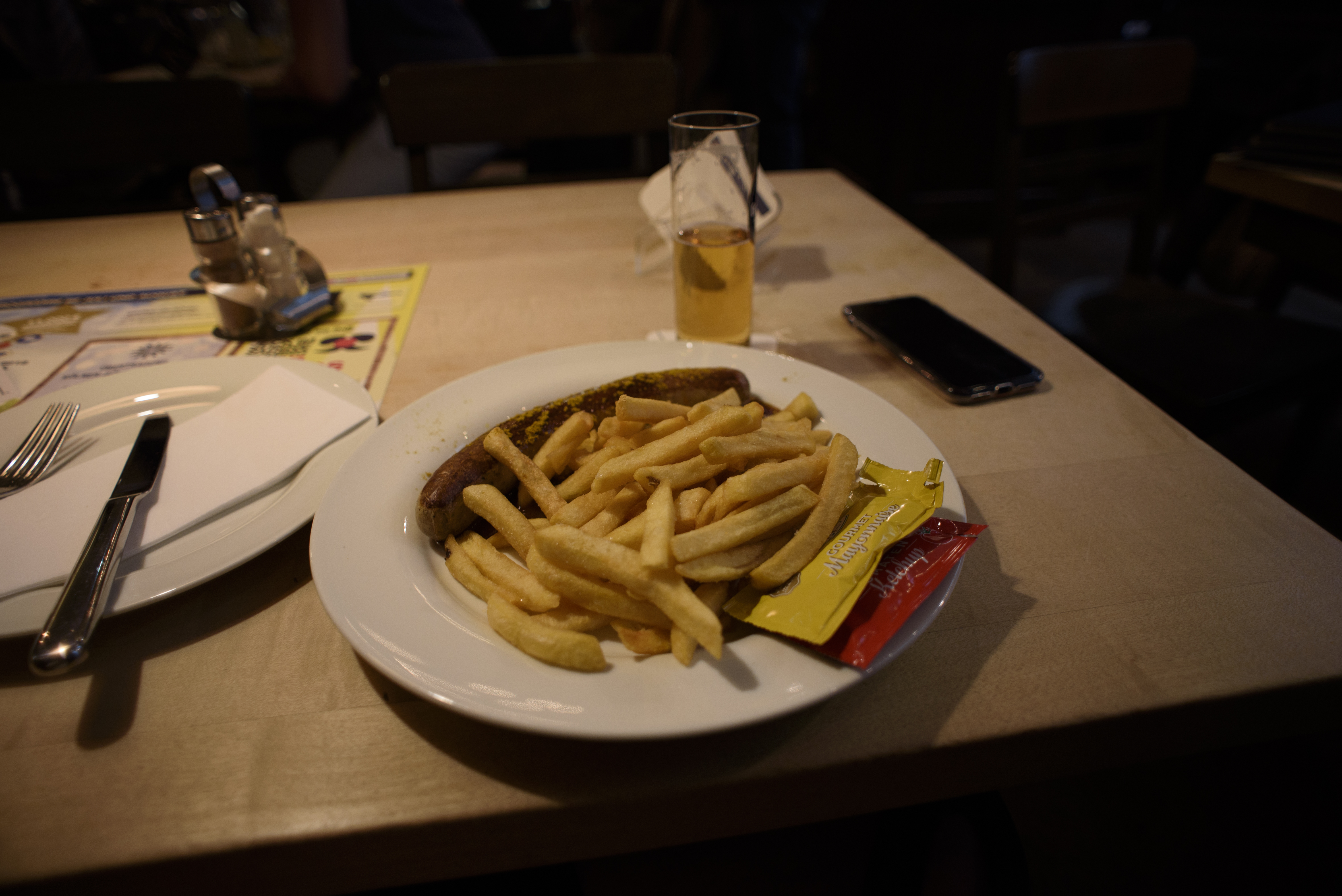 축구보는 와중에 주문한 쾰쉬 생맥주와 부어스트+감튀가 왔다. 축구에 맥주, 그리고 소시지.. 환상적이지! 특히 쾰쉬 맥주가 아주 꿀맛이었다. 얇은 잔에 깔끔하게 나오는 게 에일이라 믿기지 않을 정도로 깔끔했음! 이게 독일맥주고, 이거야말로 펍 아니겠느냐! 내친김에 두 잔 마시면서 왁자지껄한 분위기를 즐겼다.