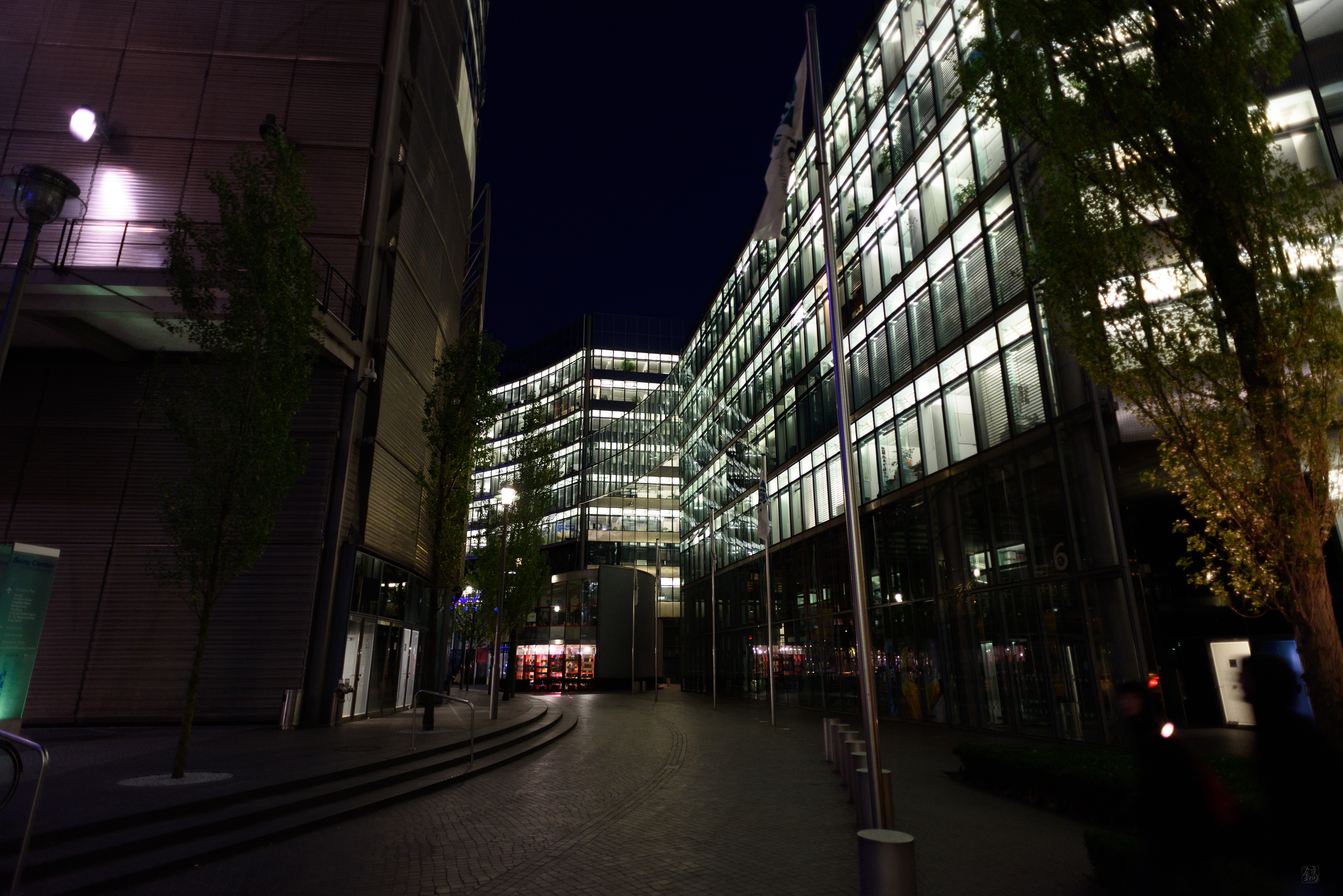 티어가르텐의 소녀상을 지나쳐 다시 남쪽으로 쭉 걸어왔다. 밤이 된 소니센터로 가니 확실히 우리나라 도심의 오피스 빌딩숲 그 느낌이었다. 독일에서 이런 느낌이라니 새로운데...!? 카메라에 빌딩숲(?)을 담으며 포츠담 광장역으로 걸어갔다.