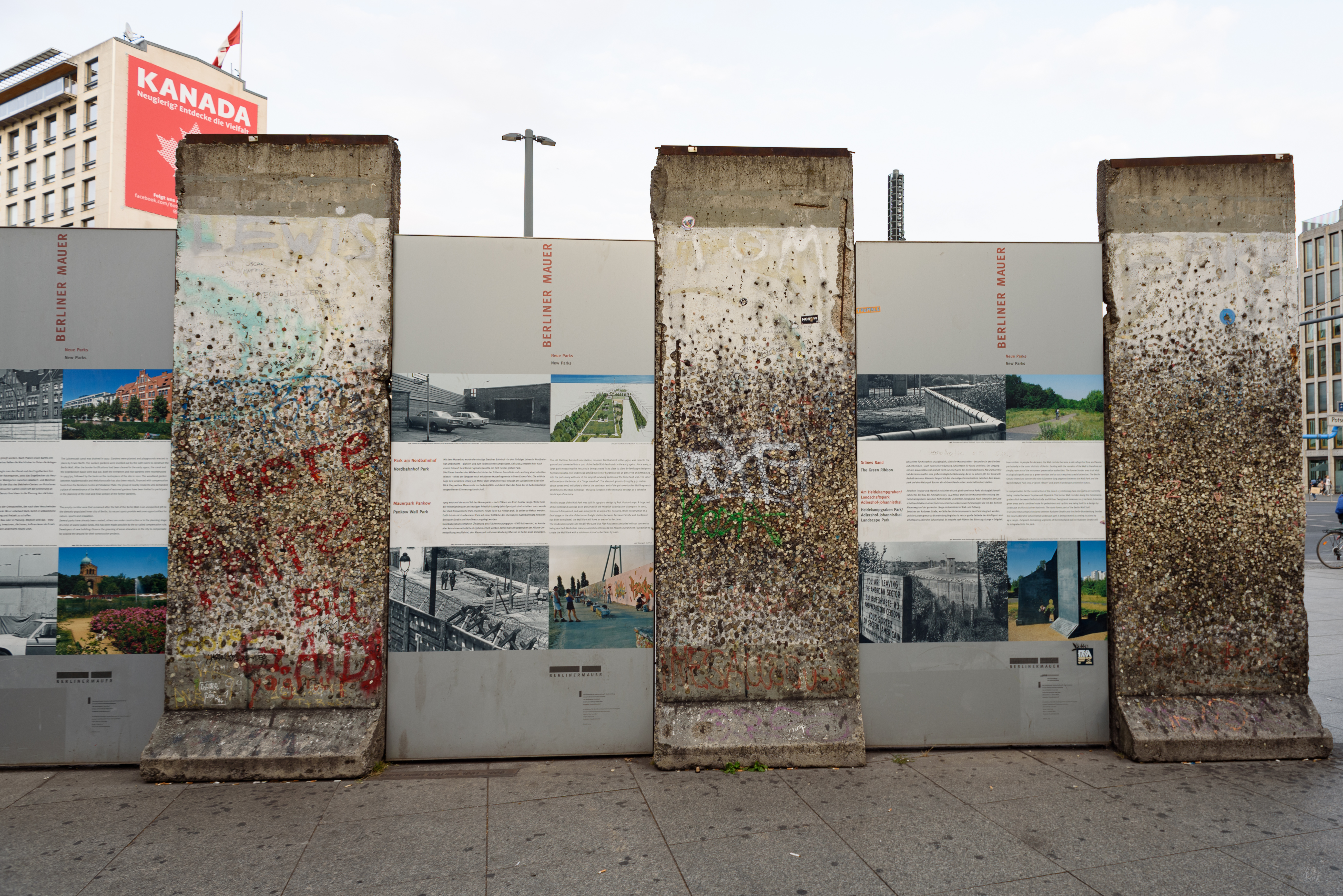 광장에 있는 장벽 쪽으로 가니 그 근처에 장벽이 있었던 곳이라는 표식이 있었고, 차도 바닥엔 벽돌이 깔려있어 장벽이 설치된 위치를 쉽게 구별할 수 있었다. 이 몇 발자국 사이로 동독과 서독 영역을 왔다갔다하니 느낌이 이상하더라. 지금은 그저 도심 관광지인데... 광장은 아주 정비가 잘 된 도심지였는데, 장벽은 온갖 낙서가 그려져있어 더 대비되어 보였다.