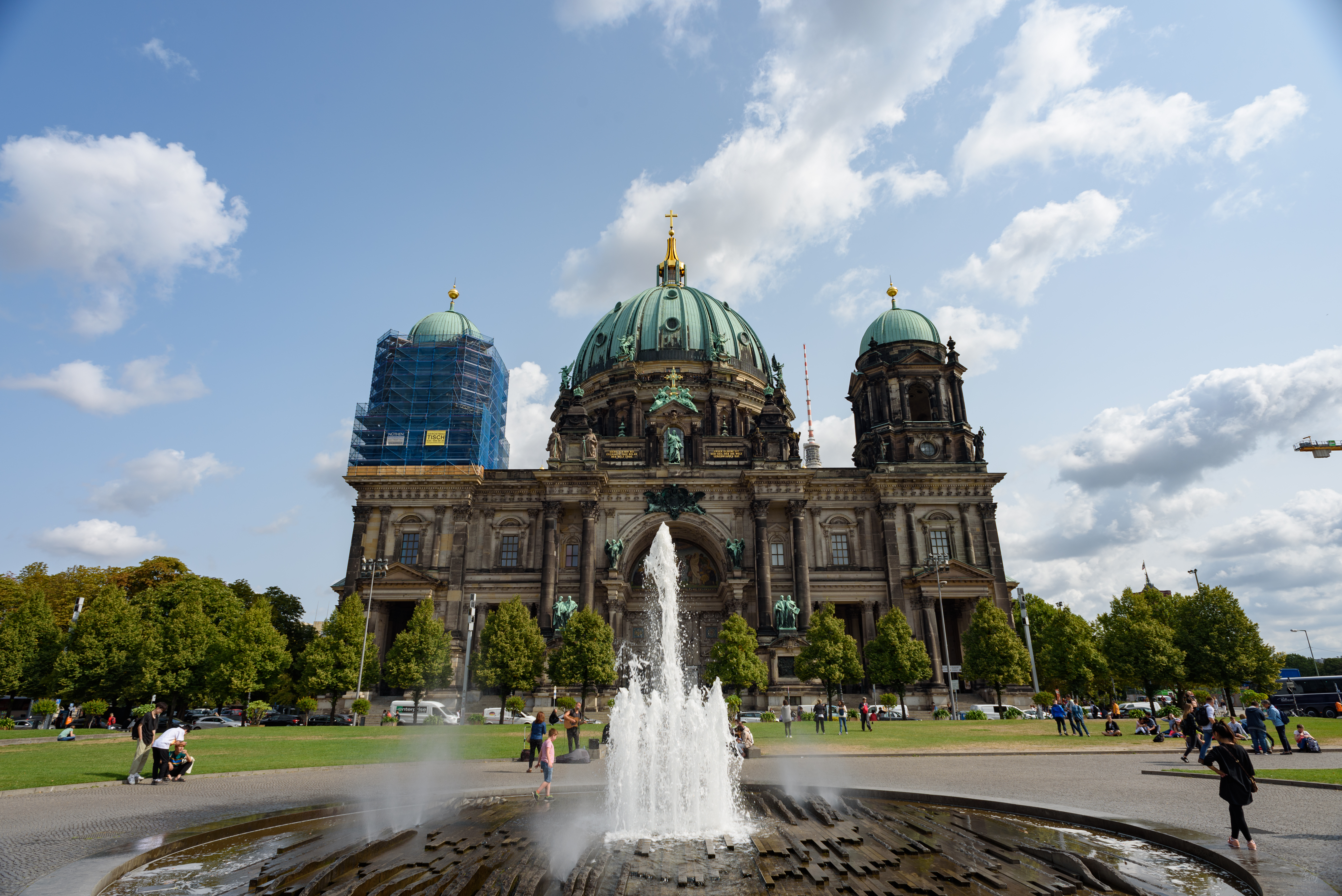 버스에서 내리자마자 조금 걸어가니 커다란 돔 지붕이 보였다. 일부분이 살짝 공사중이어서 아쉽긴 했지만, 그래도 웅장함은 여전했다. 여기에 푸른 지붕 뒤 높고 푸른 하늘과, 건물 뒤로 흐르는 강, 그리고 건물 앞에 넓게 트여있는 잔디밭(루스트 정원이며, 베를린 구 박물관이 옆에 있다)은 평온하기 그지없었다. 잔디밭에선 사람들이 자유롭게 앉아 여가를 즐기고 있었는데, 으레 유럽인들의 일상 하면 떠오르는 그 모습 그대로였다!