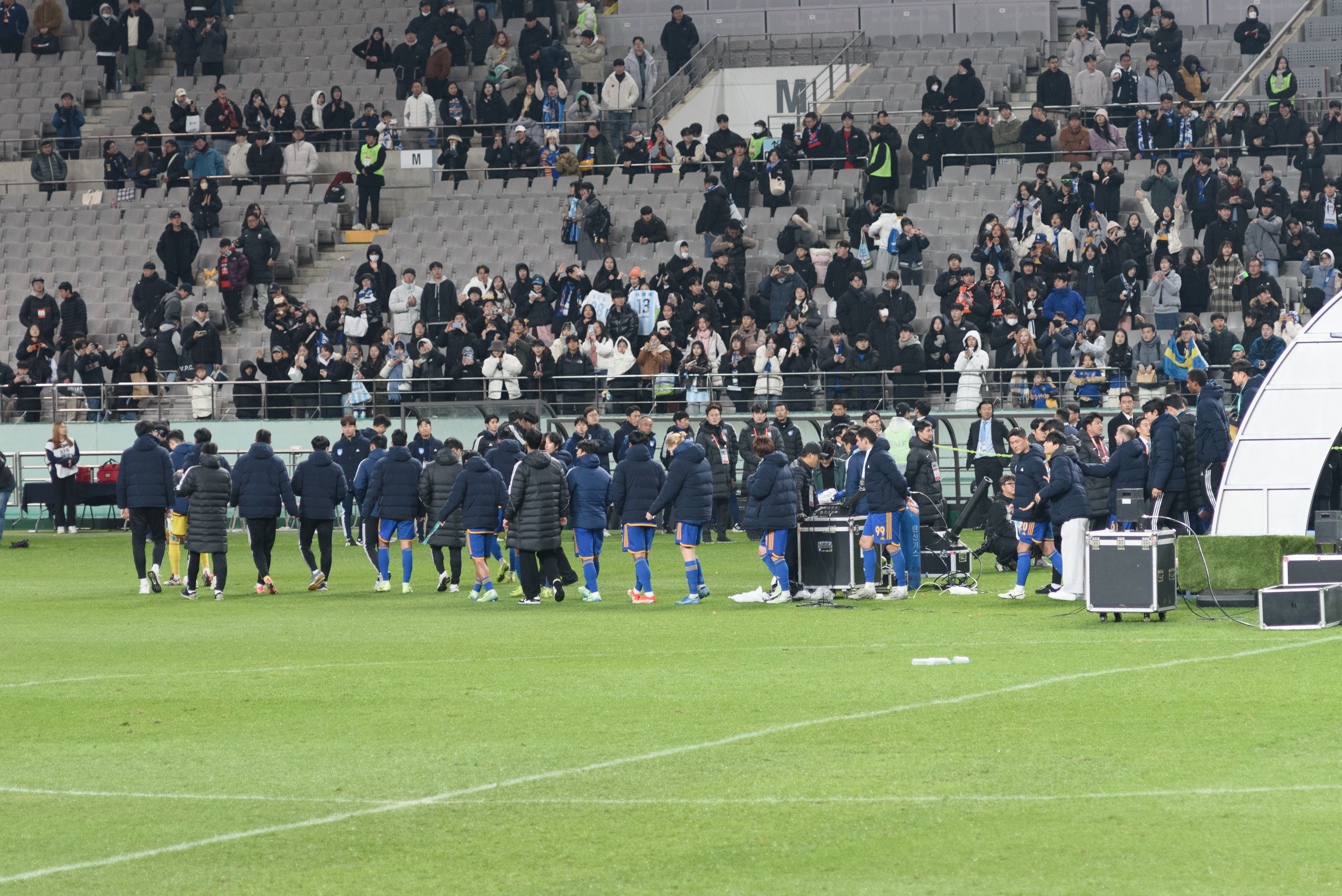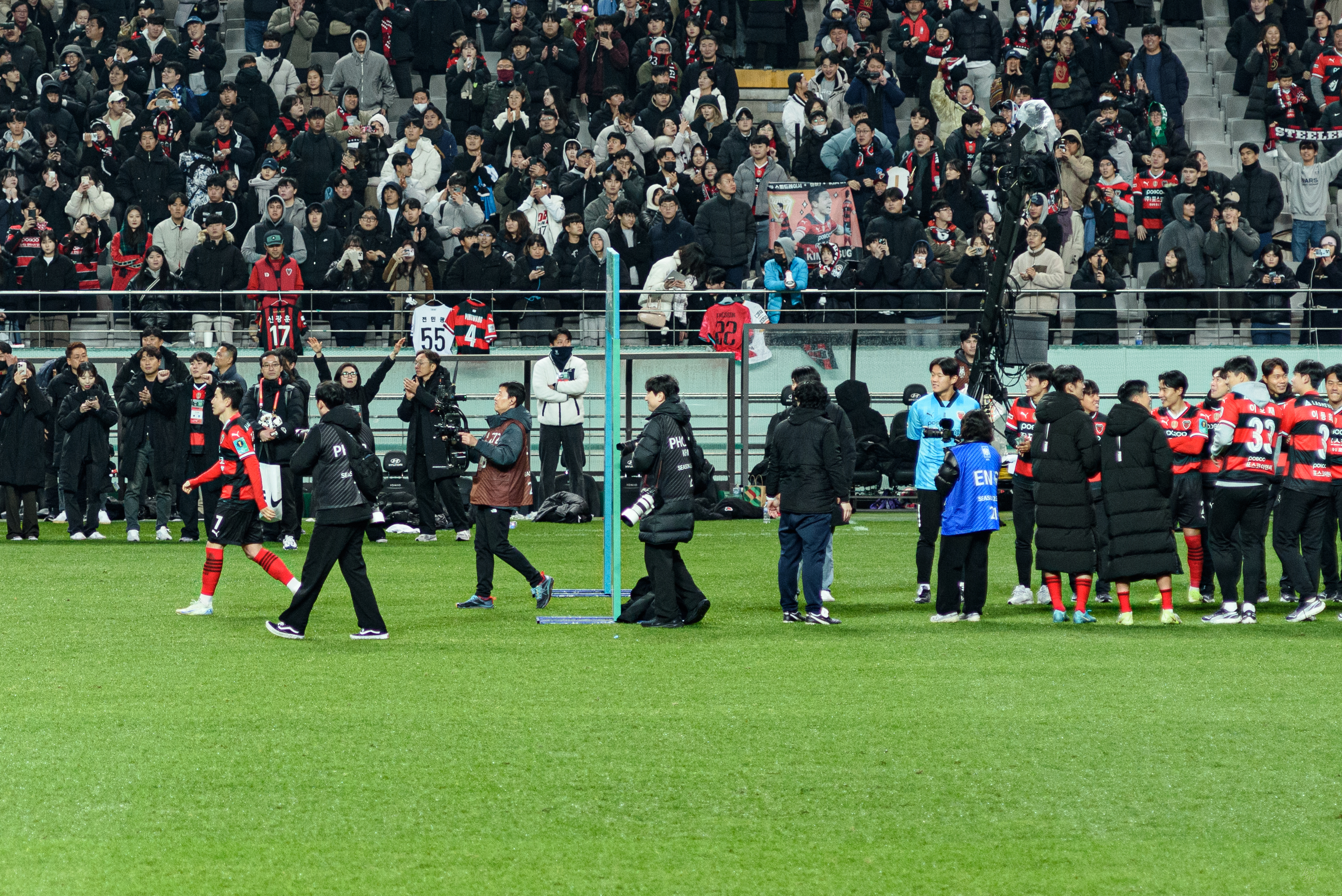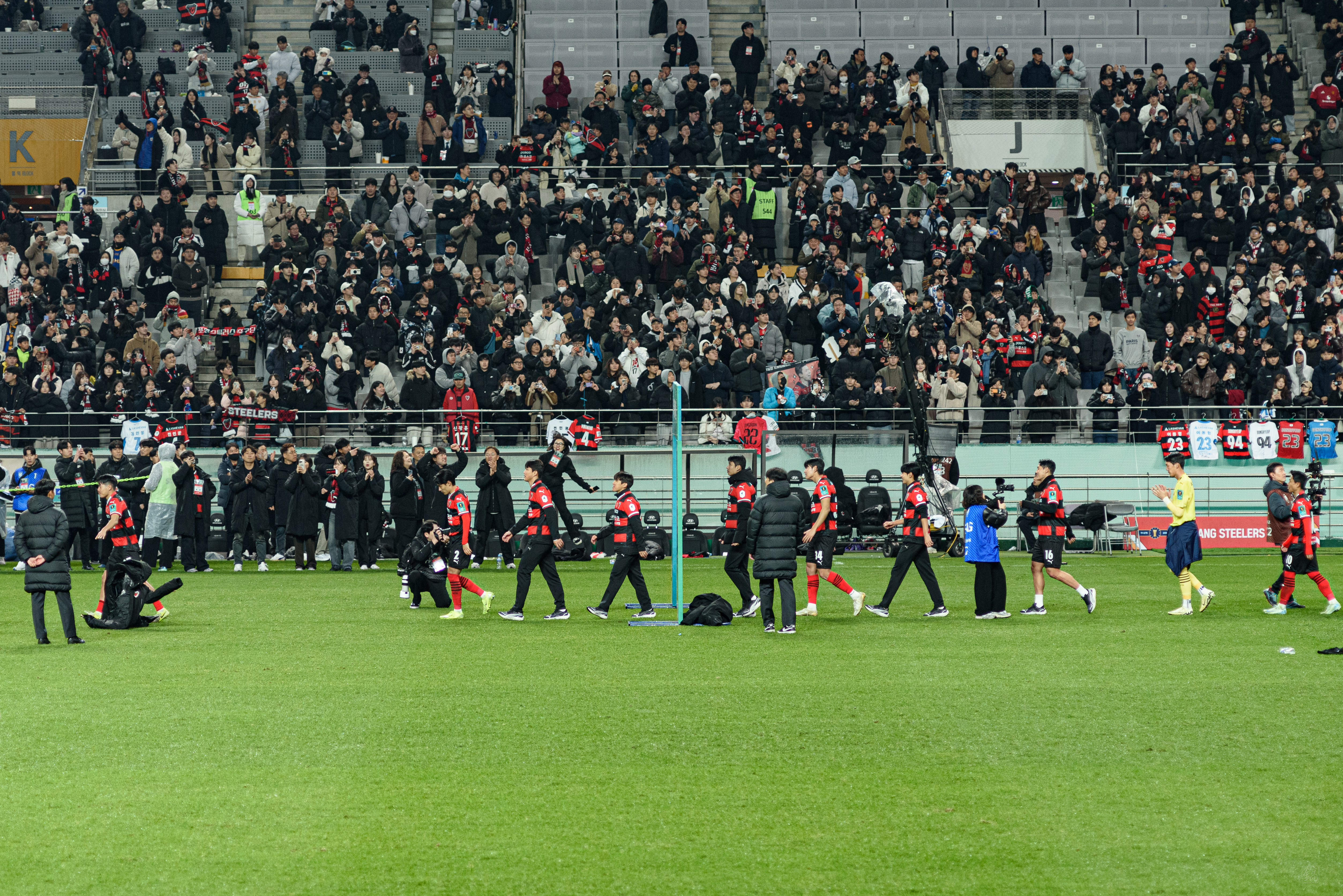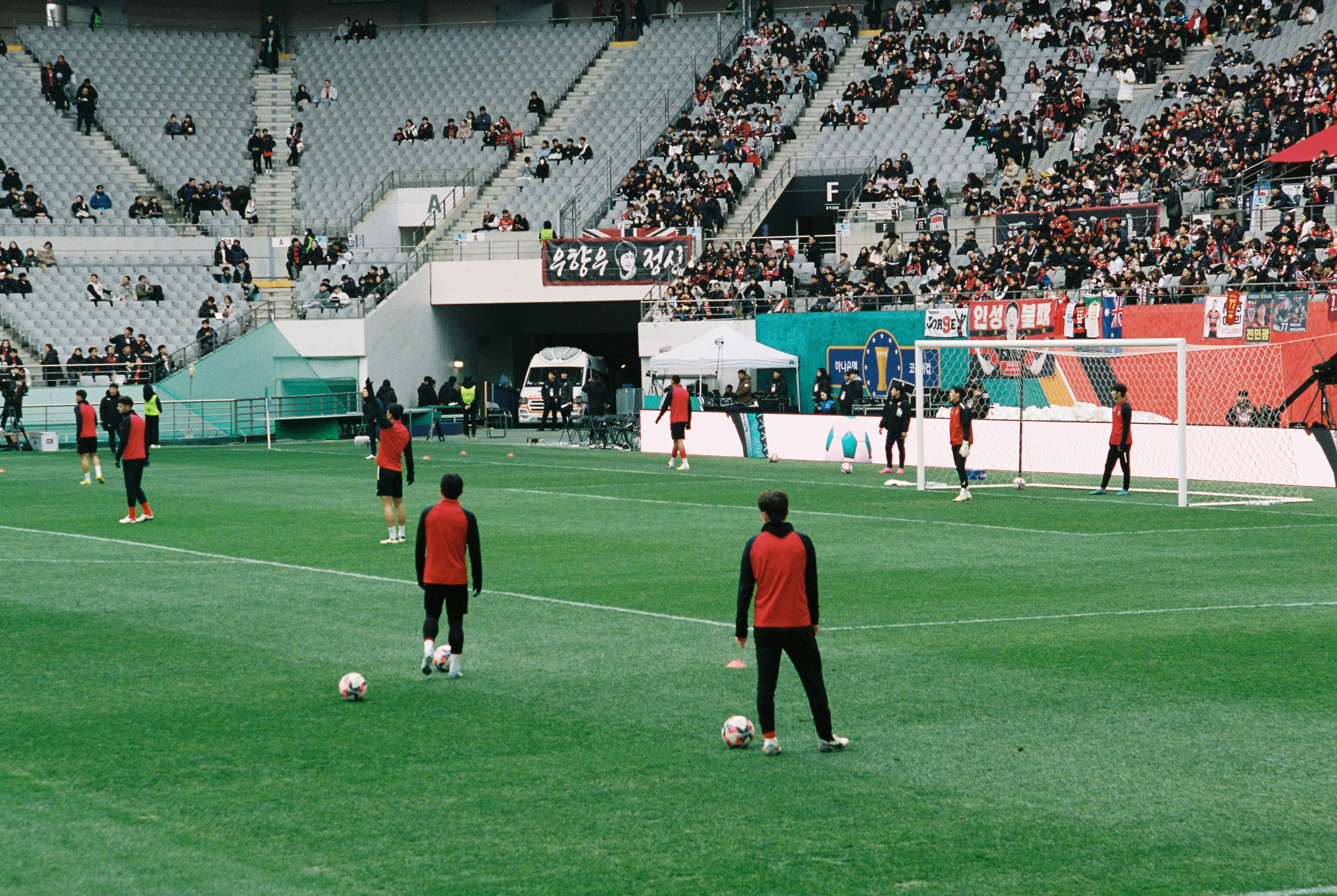 와, 사람 정말 많이 왔더라. 포항은 N석을 이미 가득 채웠고, 울산도 응원석이 빽빽히 들어찼더라(눈 때문에 절반 정도를 못 앉게 해서 좀 휑해 보이긴 했으나..). 이 날 공식 관중수가 27,138명인가 그랬는데, 양 쪽이 모두 서포터들로 빽빽이 들어찬 데다 둘 다 어디 가서 응원콜로 밀리는 팀들이 아니고, 상암 자체가 수용 관중수가 많은 구장이다 보니 정말.. 다른 경기와는 급이 다른 열기였다. 특히 우리 팀이 응원 준비를 엄청 잘해왔다는 게 체감됐다. 덕분에 약간 유럽 축구 경기를 직관하는 느낌을 받았고, 그 공기를 하나하나 카메라에 담았다.