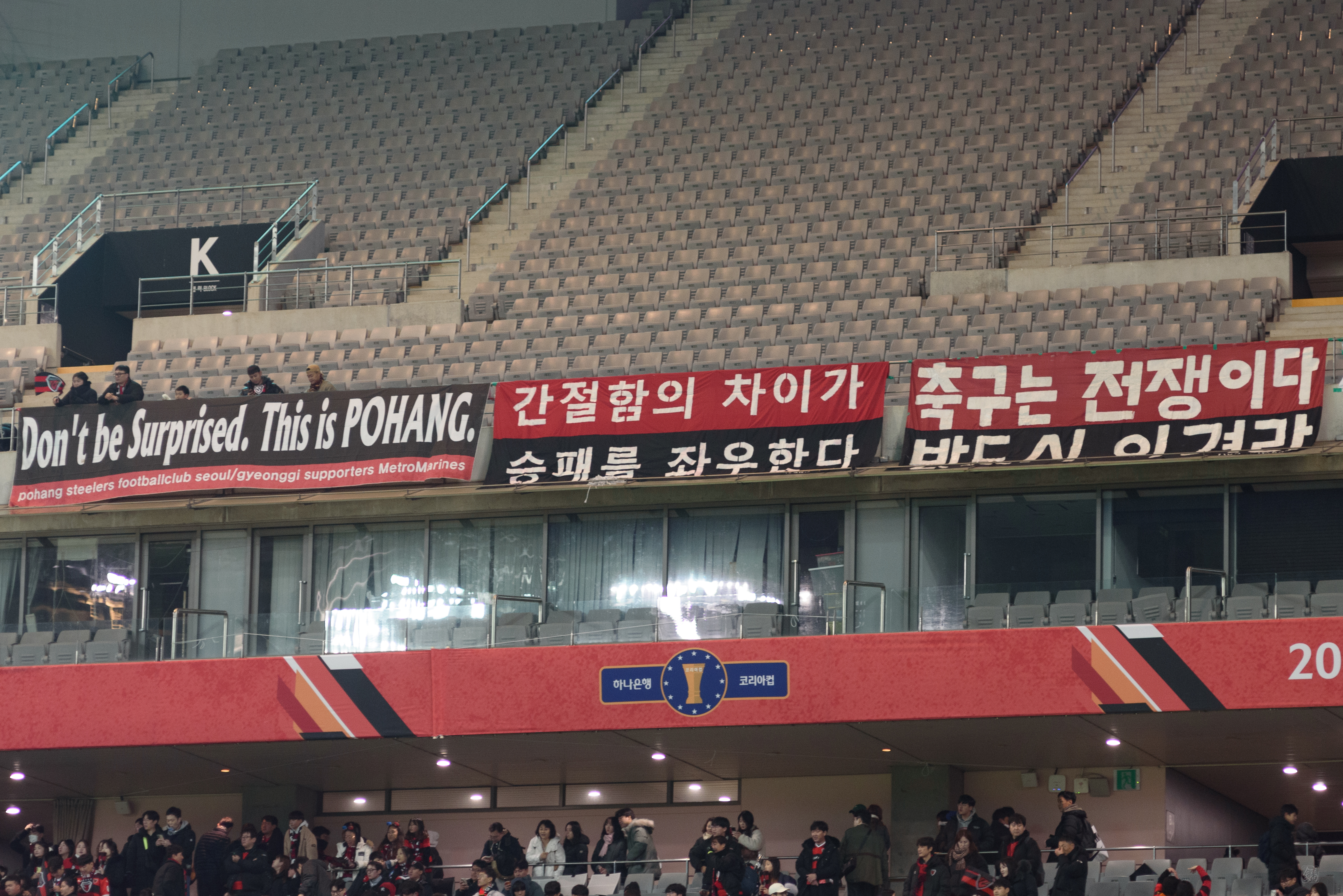 하지만 무엇보다도 가장 큰 이유는 상대가 울산 HD, 동해안 더비 라이벌이었기 때문. 이렇게 편하게 동해안더비를 볼 기회가 흔치 않은데(거의 없다..) 놓칠 수 없었다. 그리고 이 한 경기를 위해 멀리까지 오는데, 더비 라이벌이랑 맞붙는데! 그것도 결승전에서! 저쪽이 응원 목소리가 큰 것도 아는데! 비록 응원 콜을 많이 할 건 아닐지라도 내 팀 포항에게 힘을 실어주고 싶었다. [각주:1]