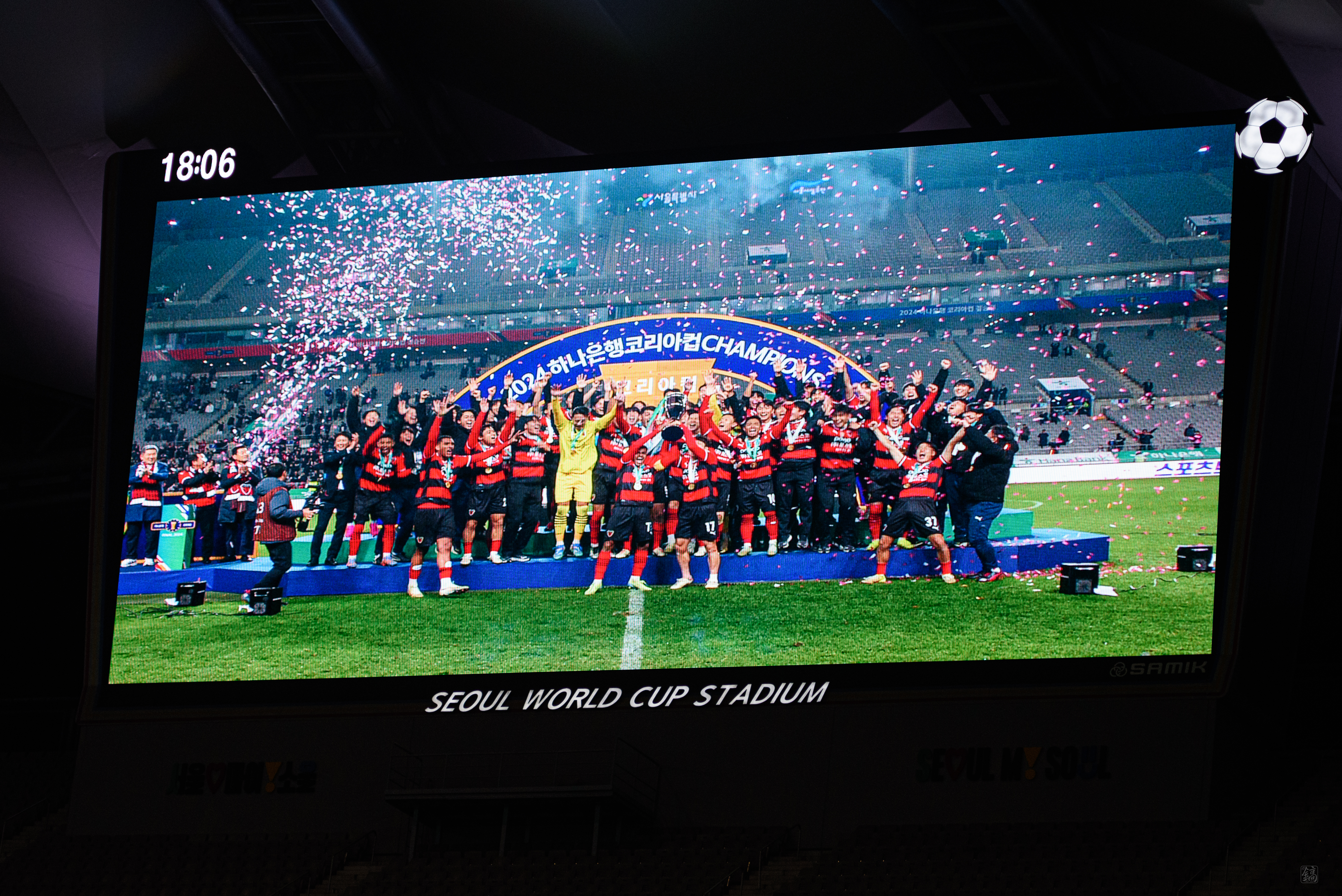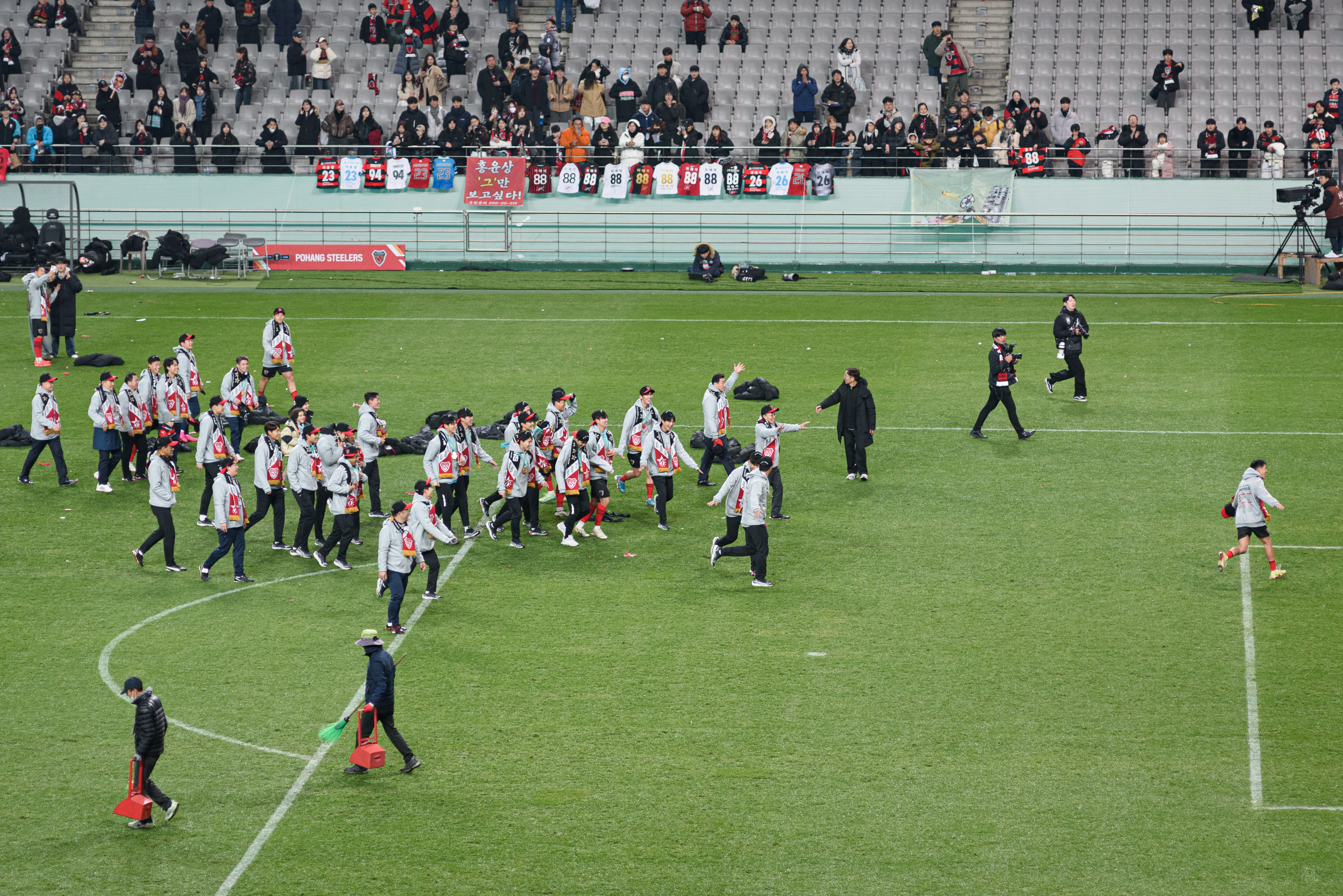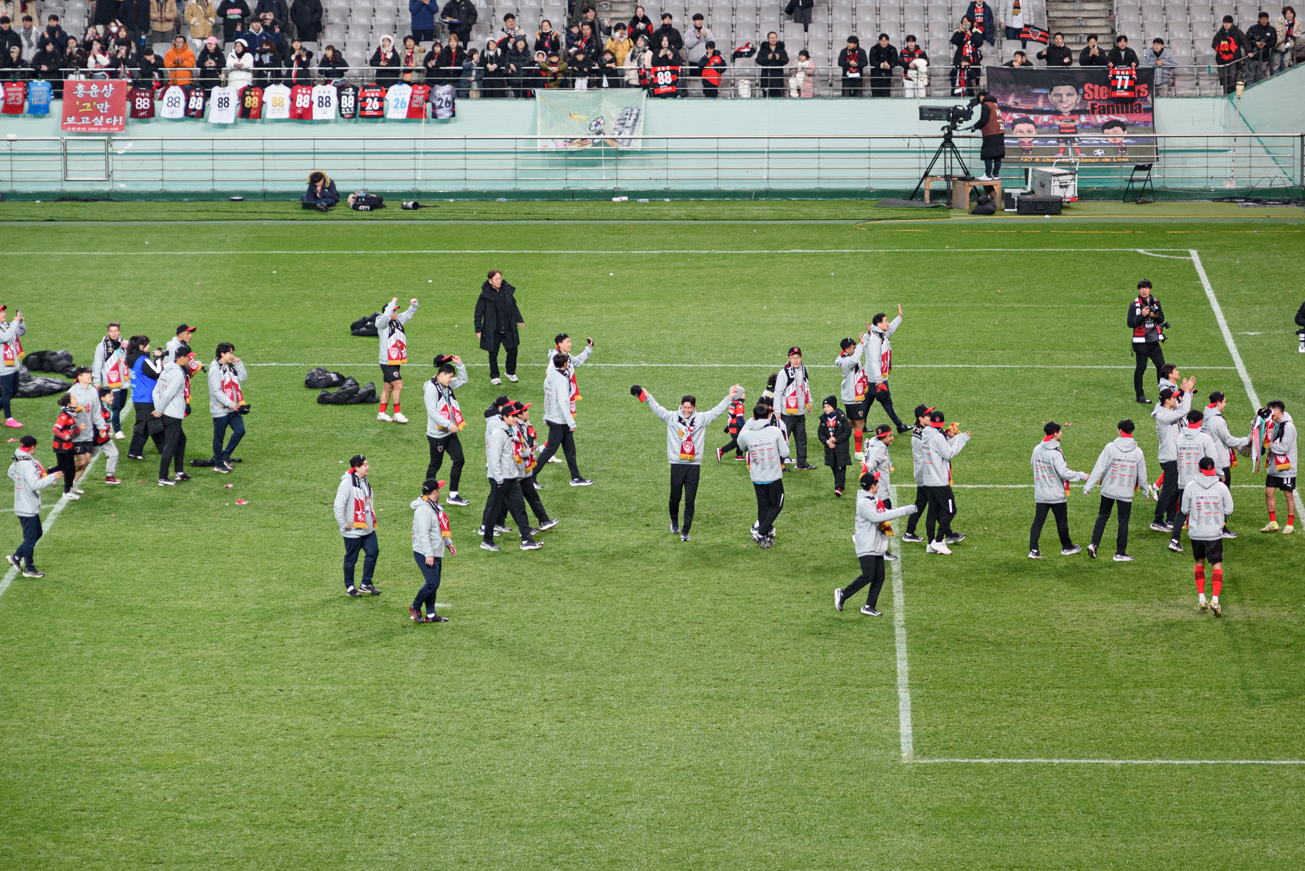모든 시상식이 끝나고, 그냥 갈까 하다 좀 더 남아서 선수들과 서포터즈들이 함께 하는 모습을 지켜봤다. 여기서도 트로피 세레머니 하는데, 이보다 더 기쁠 수 없더라. 그렇기에 사진과 영상을 계속 남겼다.