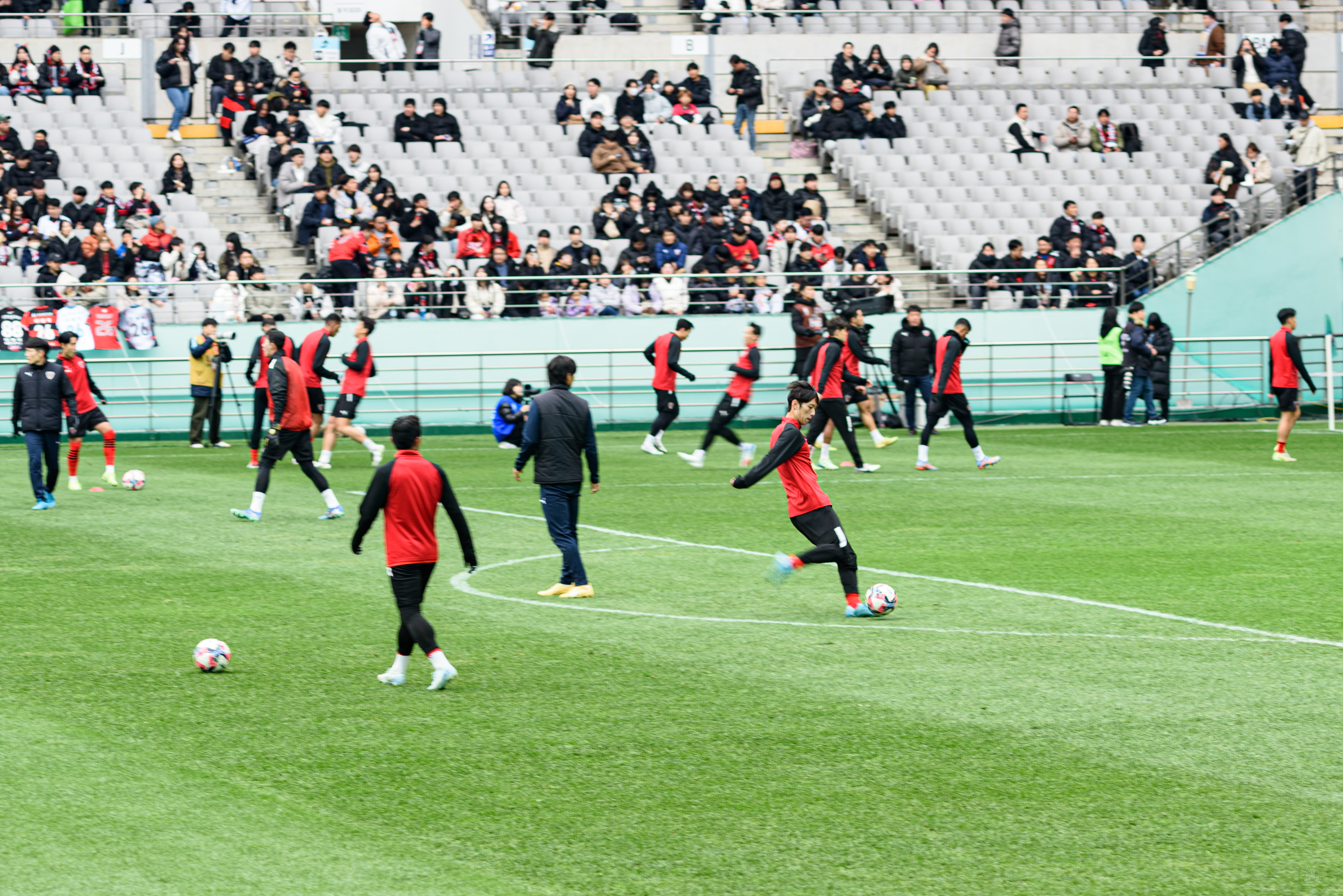 와, 사람 정말 많이 왔더라. 포항은 N석을 이미 가득 채웠고, 울산도 응원석이 빽빽히 들어찼더라(눈 때문에 절반 정도를 못 앉게 해서 좀 휑해 보이긴 했으나..). 이 날 공식 관중수가 27,138명인가 그랬는데, 양 쪽이 모두 서포터들로 빽빽이 들어찬 데다 둘 다 어디 가서 응원콜로 밀리는 팀들이 아니고, 상암 자체가 수용 관중수가 많은 구장이다 보니 정말.. 다른 경기와는 급이 다른 열기였다. 특히 우리 팀이 응원 준비를 엄청 잘해왔다는 게 체감됐다. 덕분에 약간 유럽 축구 경기를 직관하는 느낌을 받았고, 그 공기를 하나하나 카메라에 담았다.