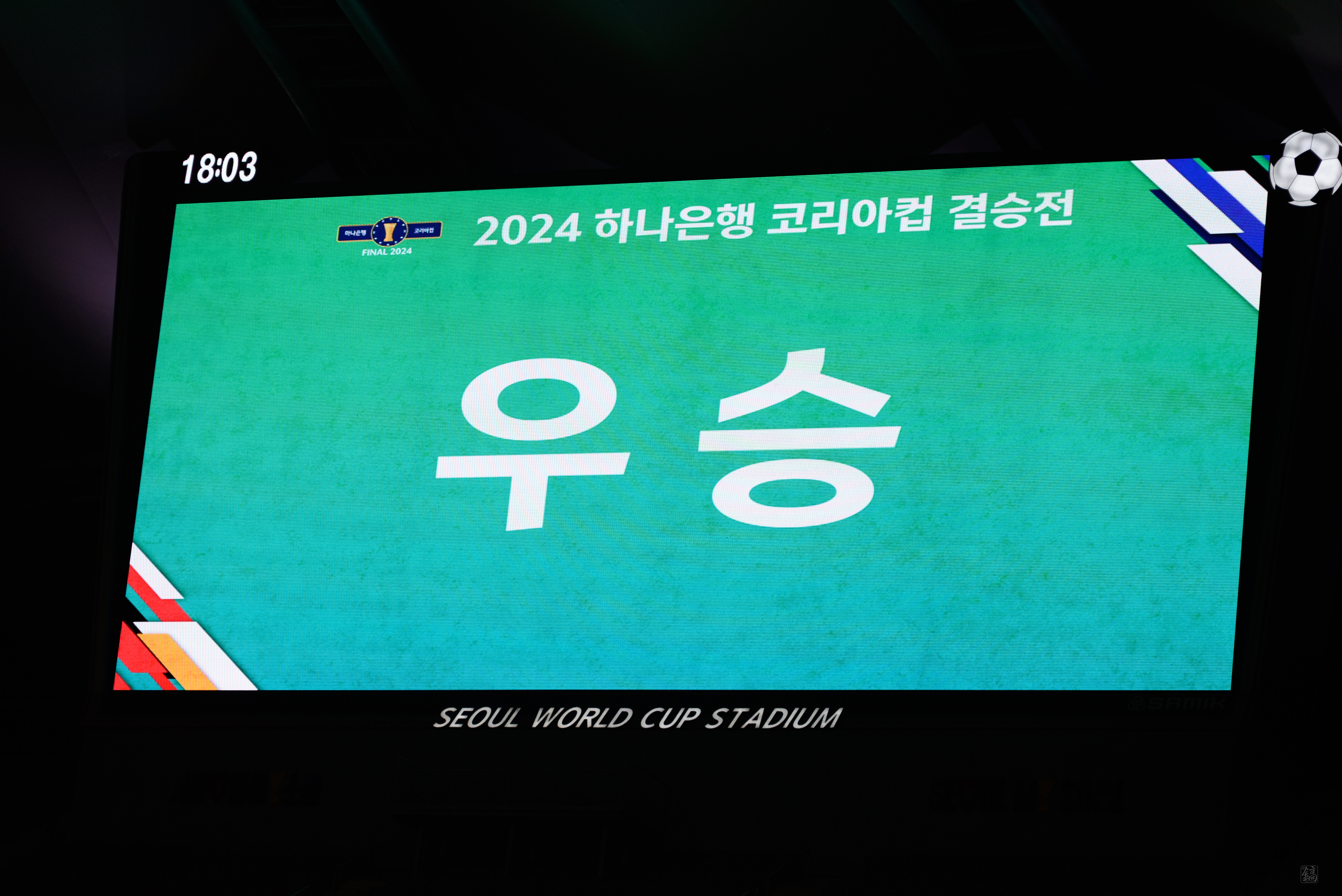 연장 후반 추가시간 4분도 지나고, 울산의 마지막 크로스를 윤평국이 잡으며 승리했음을 확신하여 손을 들었다. 공을 높이 띄우길래 이제 우승 순간을 즐기려고 일어나려는데 강현제가 엄청난 터치와 함께 기회를 만들었고, 확인사살까지 마무리했다!!! 딱 그 골 터지는 순간 영상을 찍으려던 걸 까맣게 잊고선 목놓아 환호했고, 이내 다시 폰을 꺼내들어 그 순간을 영상으로 담았다. 다행히 골과 함께 경기가 끝난 덕에 우승 순간을 담을 수 있었다.