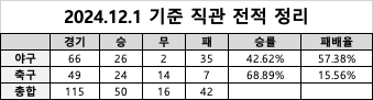2024년 12월 1일 기준 직관 일지.