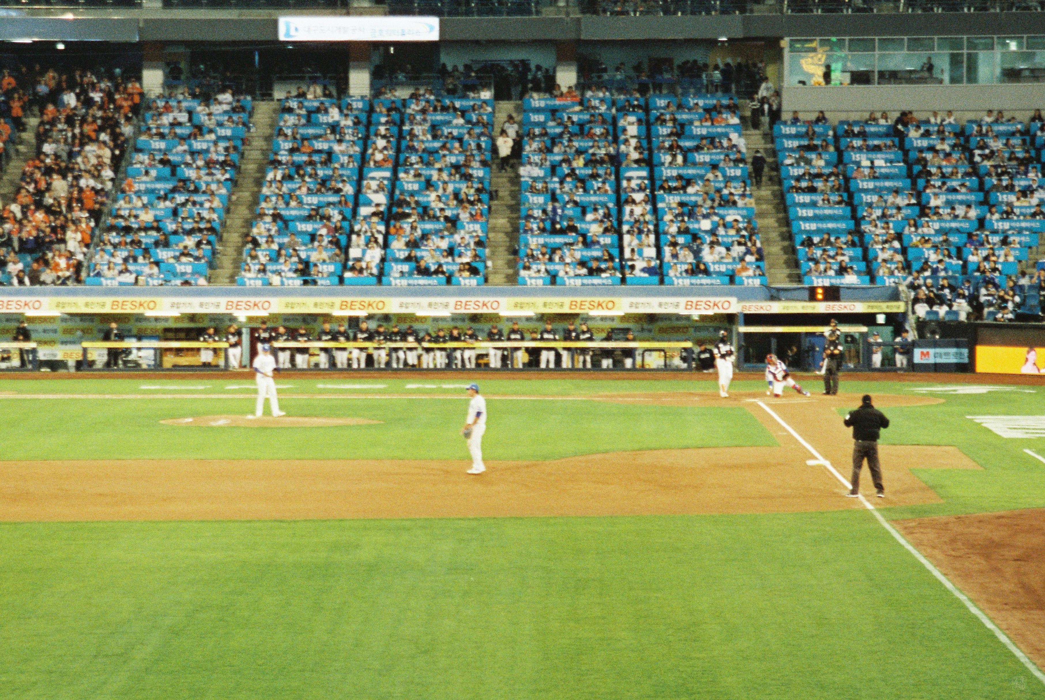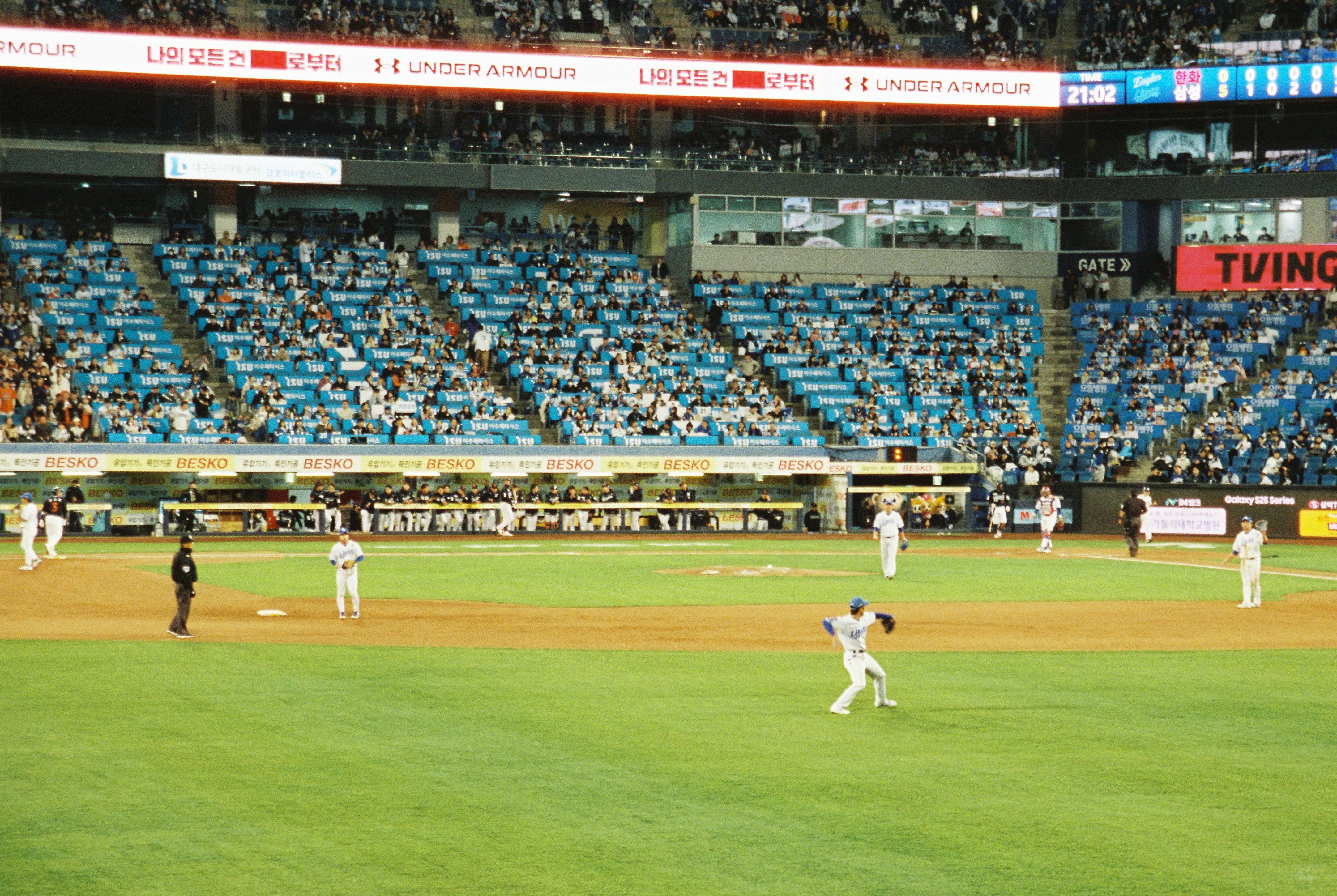 그렇게 롱토스로 몸을 풀고 불펜에 가서 본격적으로 경기에 대해 이야기하던데, 이 때부터 난 다시 주변을 둘러보며 장면을 하나하나 담...으려다가 중간에 옆자리에 앉은 사람이 내 맥주를 차는 바람에 맥주 한 캔 아예 날려먹는 소소한 이벤트(...)도 있었다. 그거 정리하랴 뭐하랴 하다보니 어느새 경기 시작을 앞두고 있었다.