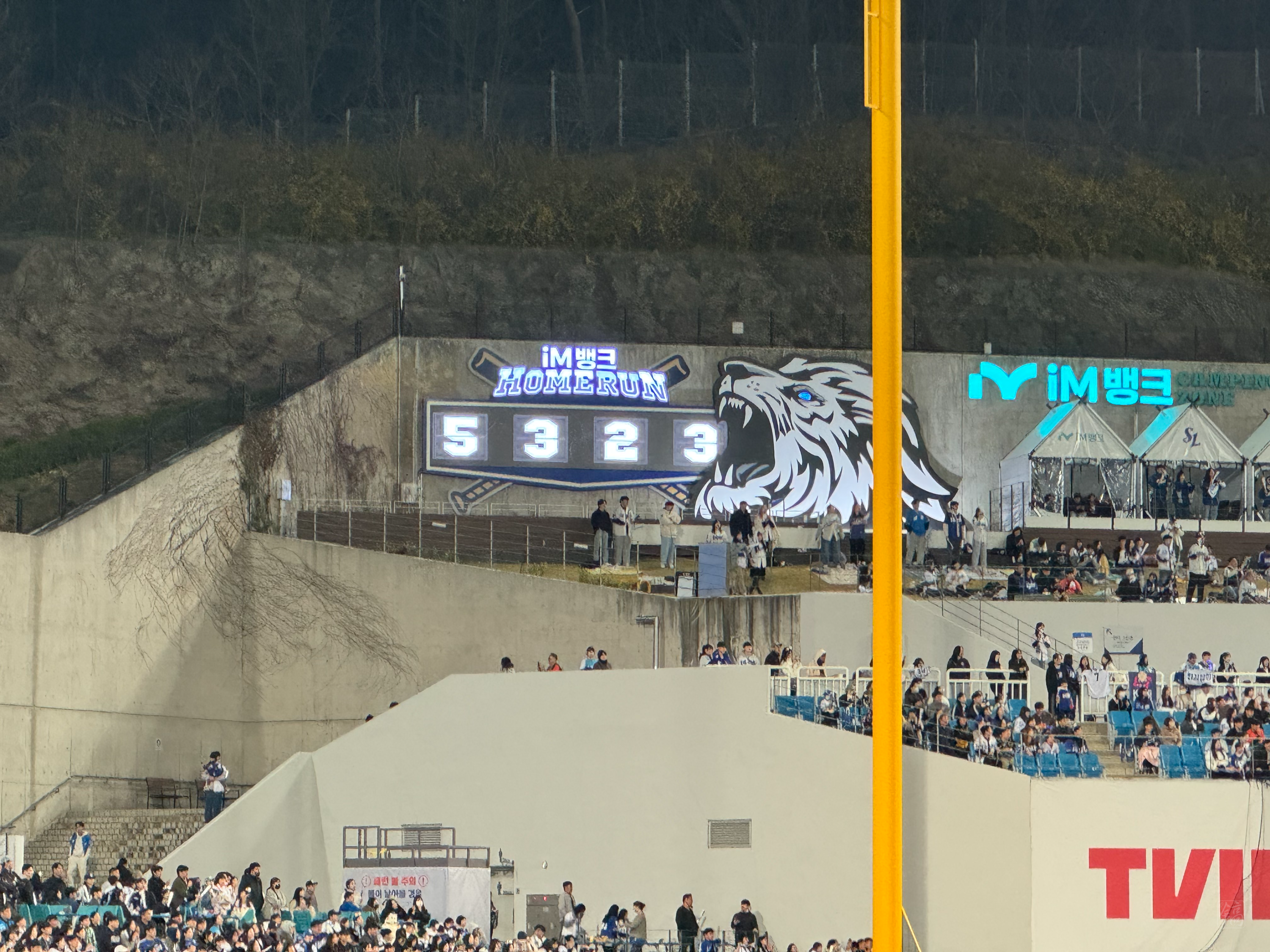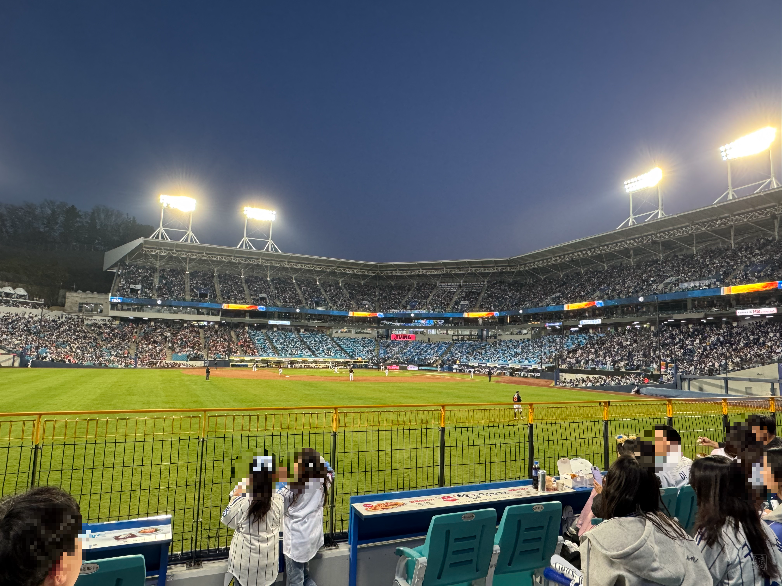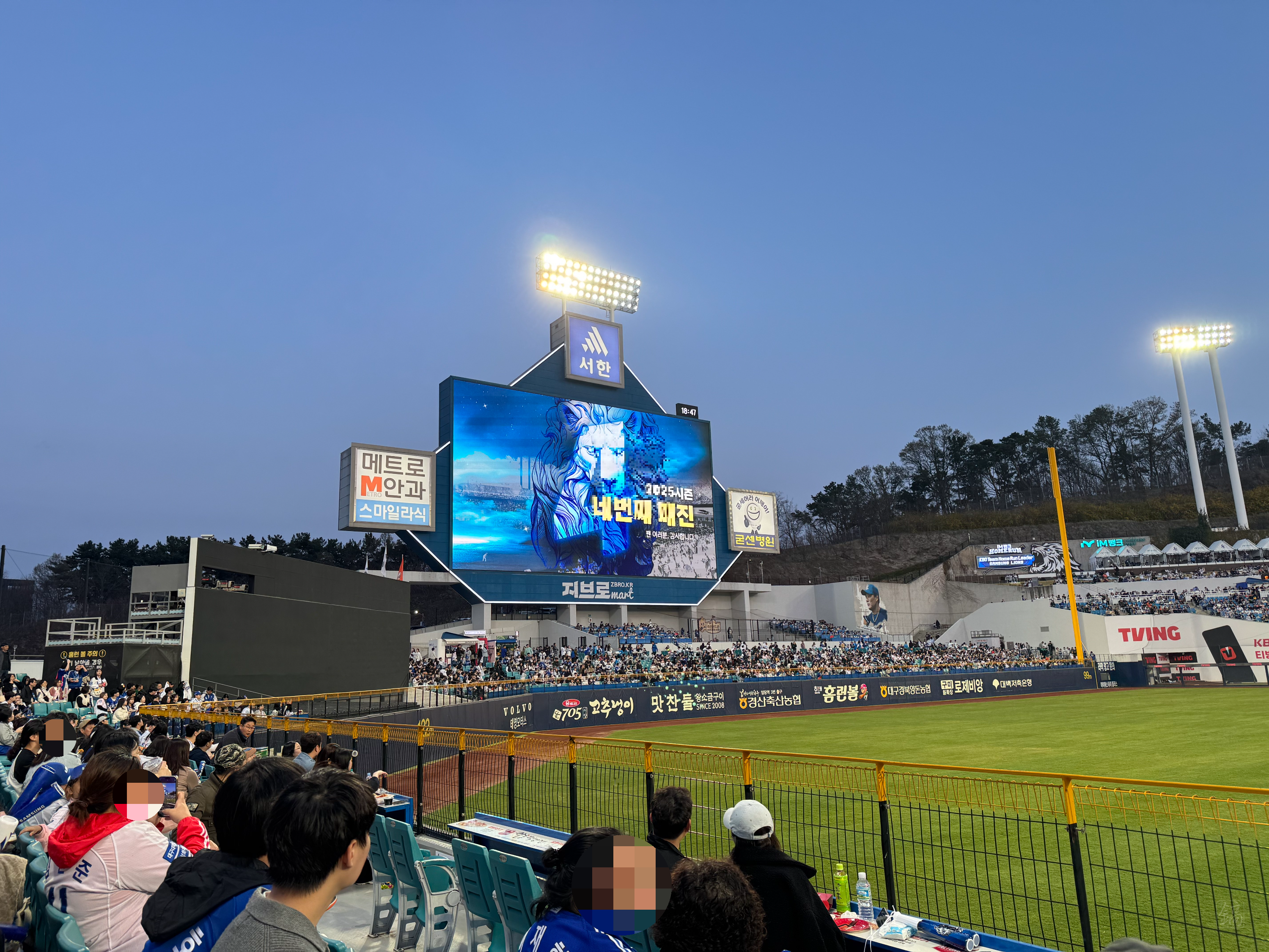 그렇게 한 바퀴 돌아다니다 맥주 한 캔 사서 자리에 앉았다. 이번에도 역시 외야석에 자리잡았는데, 최근 몇 년간 고척이나 잠실 외야석에 주로 가다 몇 년만에 라팍 외야석으로 가서 그런지(가장 최근에 갔던 2022년에는 포수 뒷편(인데 3루에 조금 더 가까운...) 스카이석에서 경기를 관람했었다.) 외야가 짧다는 게 실감되더라. 더군다나 바로 전 주(3/30)에 잠실 외야석에서 관람을 했었기에 그 체감이 더욱 컸다. 이래서 김잠실, 김라팍 하는구나 ㅋㅋㅋ..