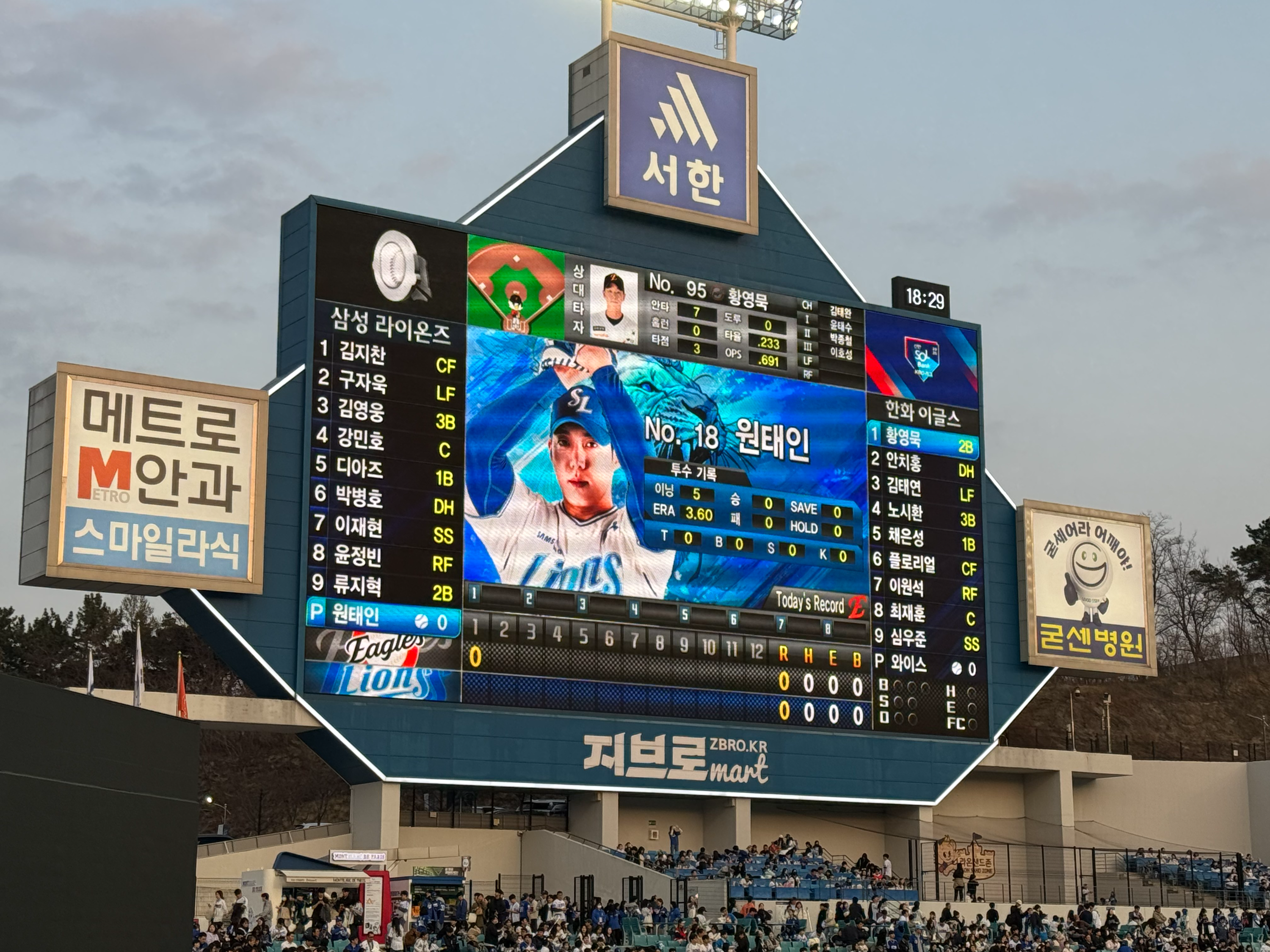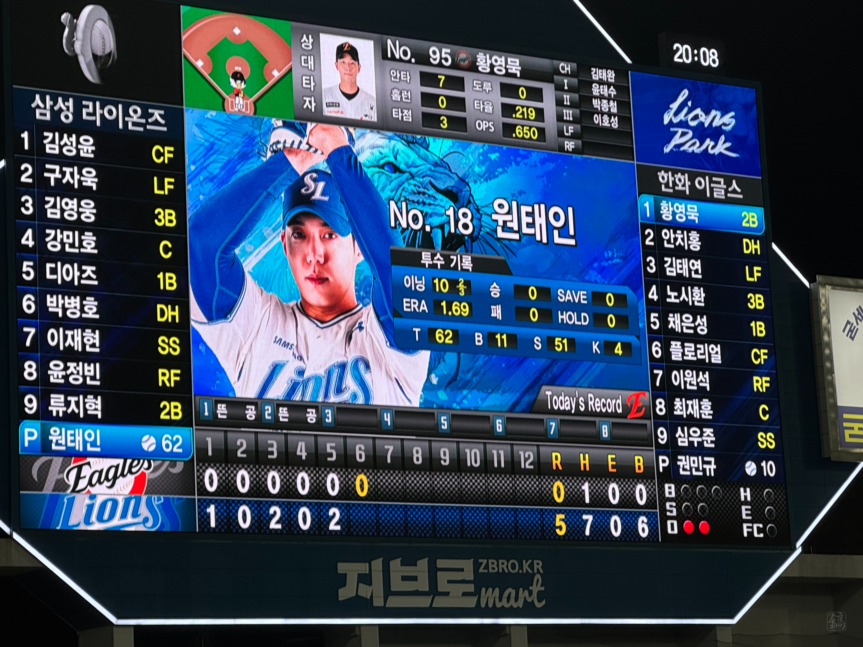이 날 경기는 여태껏 직관으로 봤던 경기 중 손에 꼽을 정도로 압도적인 경기였다. 우선 푸피에 원태인의 투구도 완벽했고, 틈틈이 터져준 김히어로와 박뱅의 홈런포, 그리고 05년생의 적시타 또한 짜릿했다.