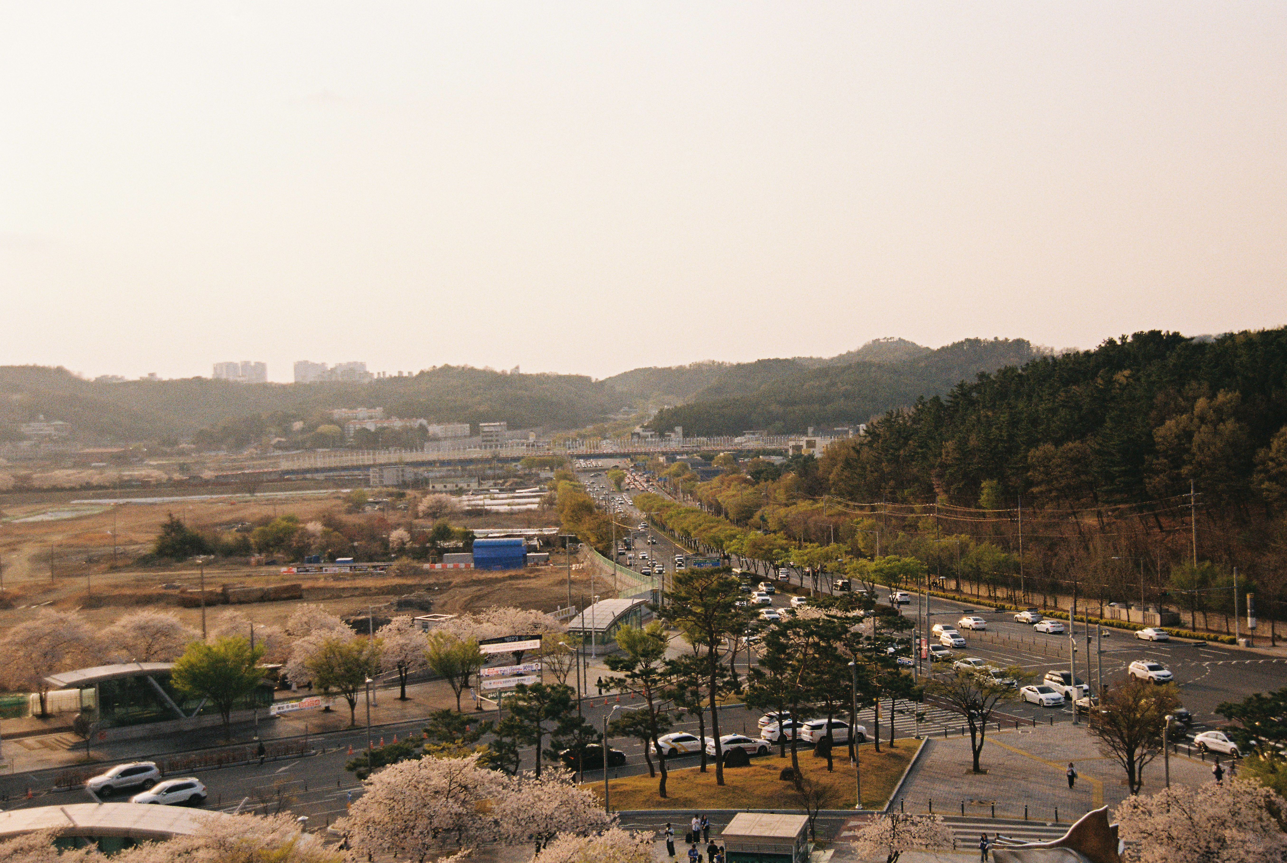 만족스런 점저를 먹고, 야구장으로 바로 넘어갔다. 적당히 넘어간 햇살 속에 벚꽃이 만개한, 완연한 봄날이었다. 역시 남쪽이라 봄기운이 빨리 찾아오기도 했거니와, 마음에도 봄이 찾아왔기에 온전히 즐길 수 있었으리라.