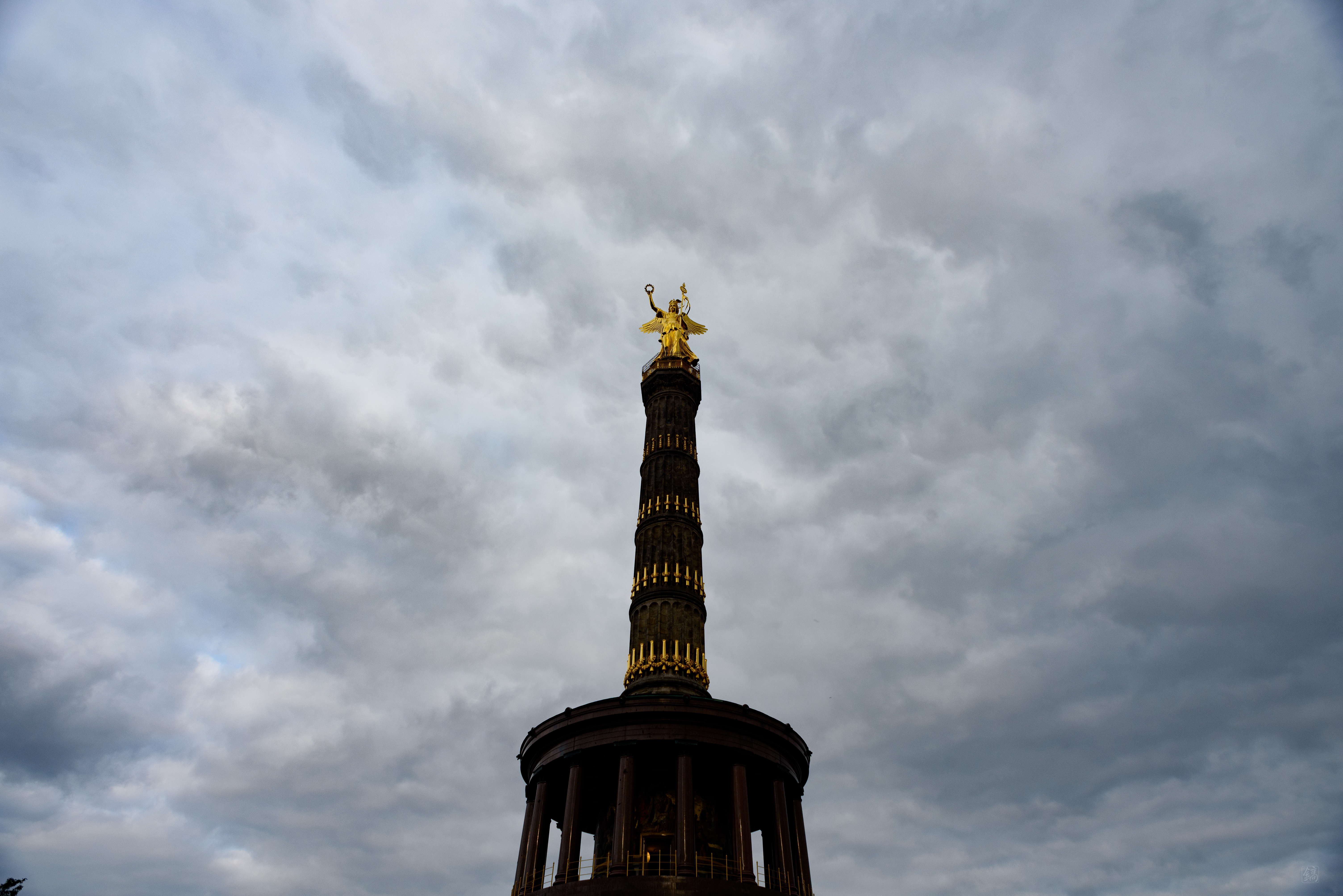 그렇게 얼마 지나지 않아 전승기념탑에 도착했는데, 생각보다 정말 컸다! 여기에 꼭대기에 있는 조형물에서 금빛이..! 하필 이 순간 날씨가 오락가락하고 아주 쾌청하진 않아 더 빛나게 찍지 못해 아쉬울 따름이었다. 내부에 올라가서 티어가르텐을 내려다볼 수도 있지만 유료라 그냥 패스.
