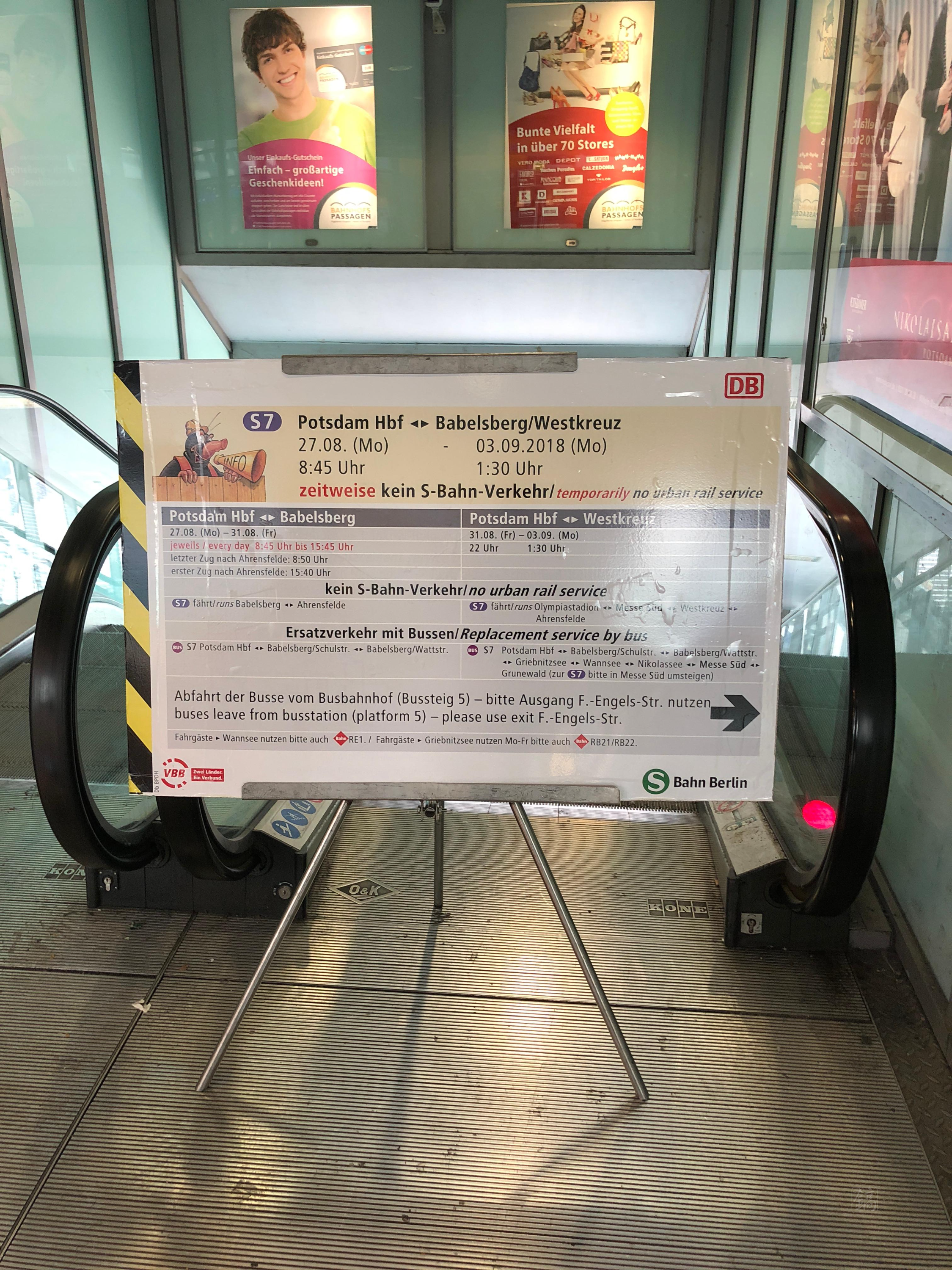 아무튼 다시 동독으로 넘어왔다. 근데... 포츠담 중앙역이 아닌데 사람들보고 모두 내리라고 한다!! 아니 왜!! 라는 생각이 들었는데, 따라가보니 S7 라벨이 붙은 버스가 역 앞에서 대기중이었다. 그걸 타고 포츠담 중앙역에 도착했다. 중앙역에 내려서 보니까...