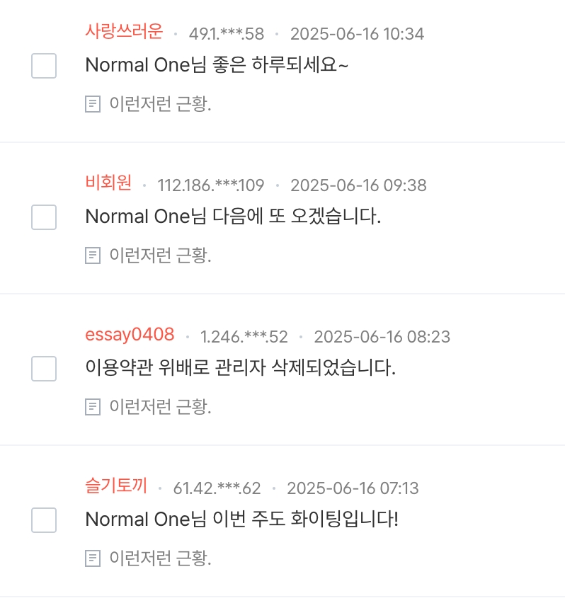어~ 계속해봐~ 2025.06.16 20:05 Stubs 반응형 복붙댓글 쓰는 족족 신고야~ 그리고 박제할거야~ 공유하기 게시글 관리 Echte Liebe 저작자표시 비영리 변경금지 (새창열림) 'Stubs' 카테고리의 다른 글 캬,,, 이럴 때 뿌듯하지. (0) 2025.07.17 허허 이거 참, 또 지름시리즈가 추가돼뿟네,,,! (2) 2025.06.27 이런저런 근황. (4) 2025.06.15 으하하하하하 내는 모리게따!! (+ 250601 내용 변경) (6) 2025.06.01 - (2) 2024.12.31 댓글 공유하기 다른 글 댓글 이 글 공유하기 구독하기 구독하기 카카오톡 카카오톡 라인 라인 트위터 트위터 Facebook Facebook 카카오스토리 카카오스토리 밴드 밴드 네이버 블로그 네이버 블로그 Pocket Pocket Evernote Evernote 다른 글 캬,,, 이럴 때 뿌듯하지. 캬,,, 이럴 때 뿌듯하지. 2025.07.17 허허 이거 참, 또 지름시리즈가 추가돼뿟네,,,! 허허 이거 참, 또 지름시리즈가 추가돼뿟네,,,! 2025.06.27 이런저런 근황. 이런저런 근황. 2025.06.15 으하하하하하 내는 모리게따!! (+ 250601 내용 변경) 으하하하하하 내는 모리게따!! (+ 250601 내용 변경) 2025.06.01 다른 글 더 둘러보기