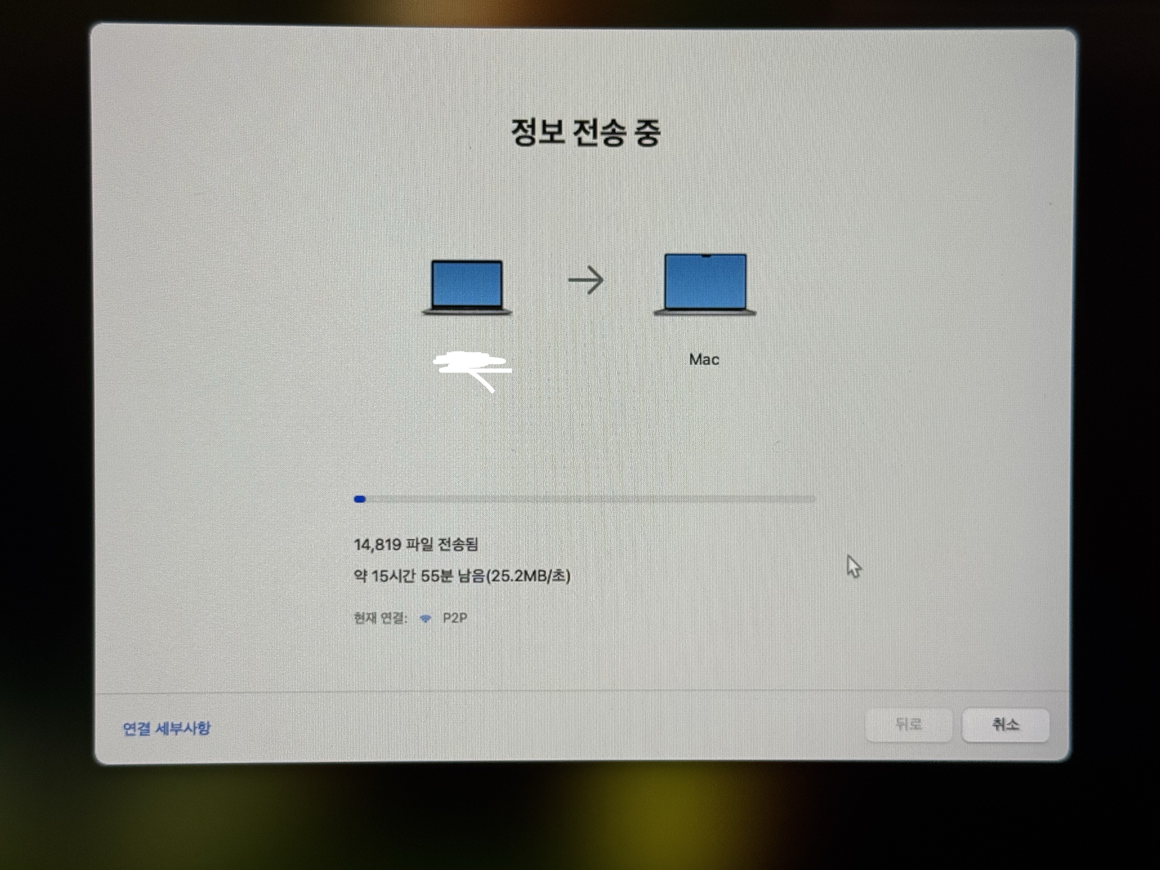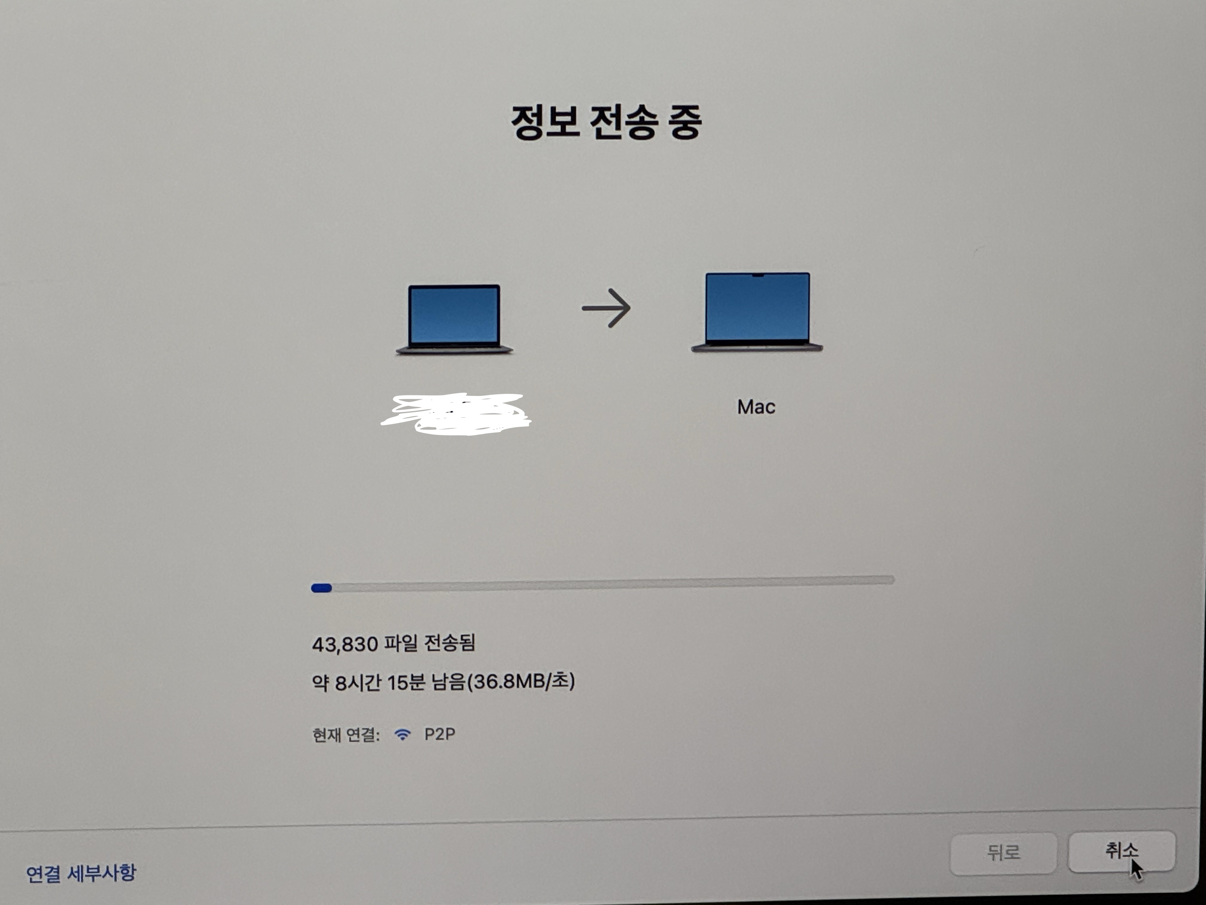맥북 마이그레이션 하는 방법에 대해선 따로 이야기하기로 하고, 마이그레이션에 대한 안내에 따라 작업을 시작했다. 근데..